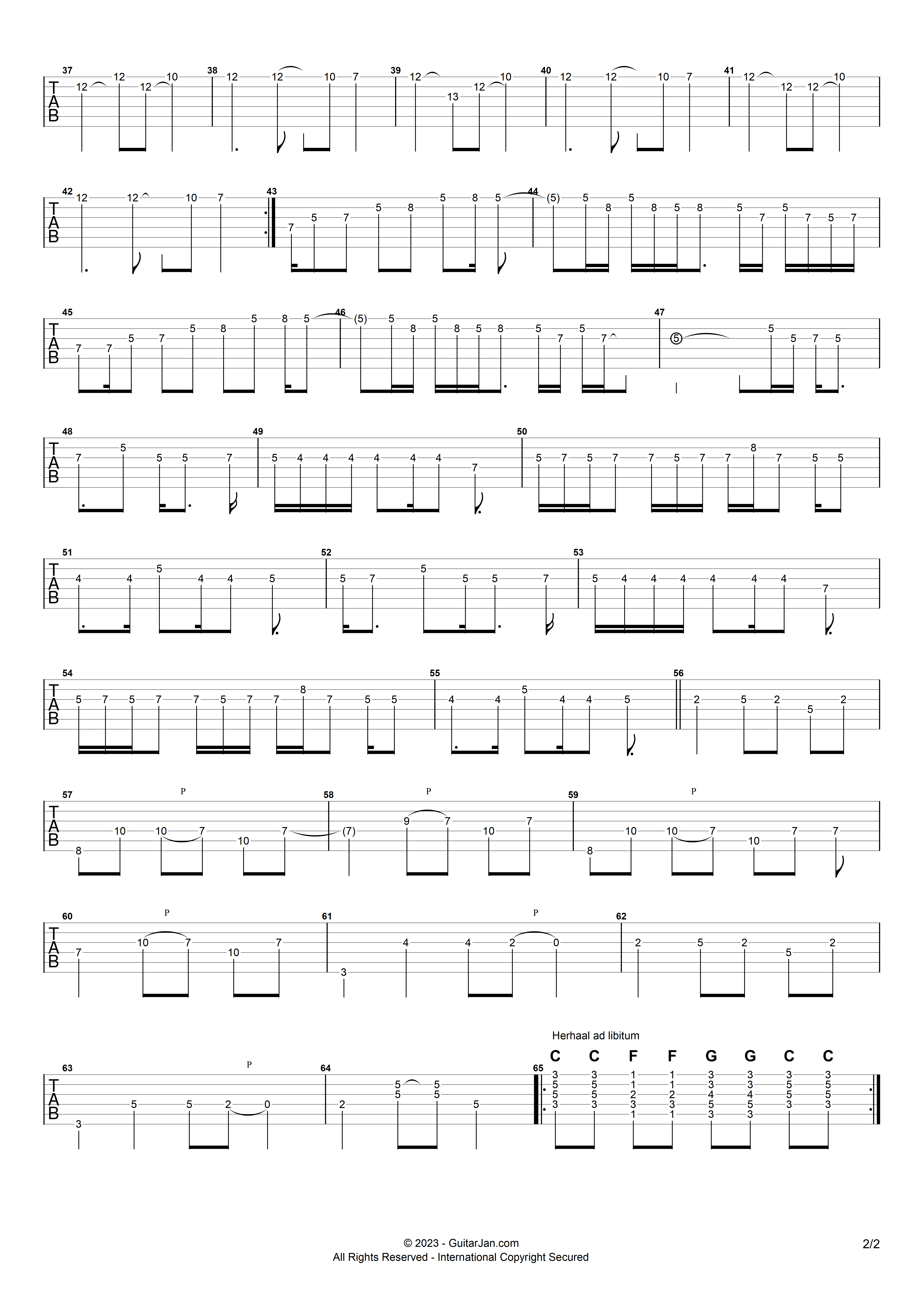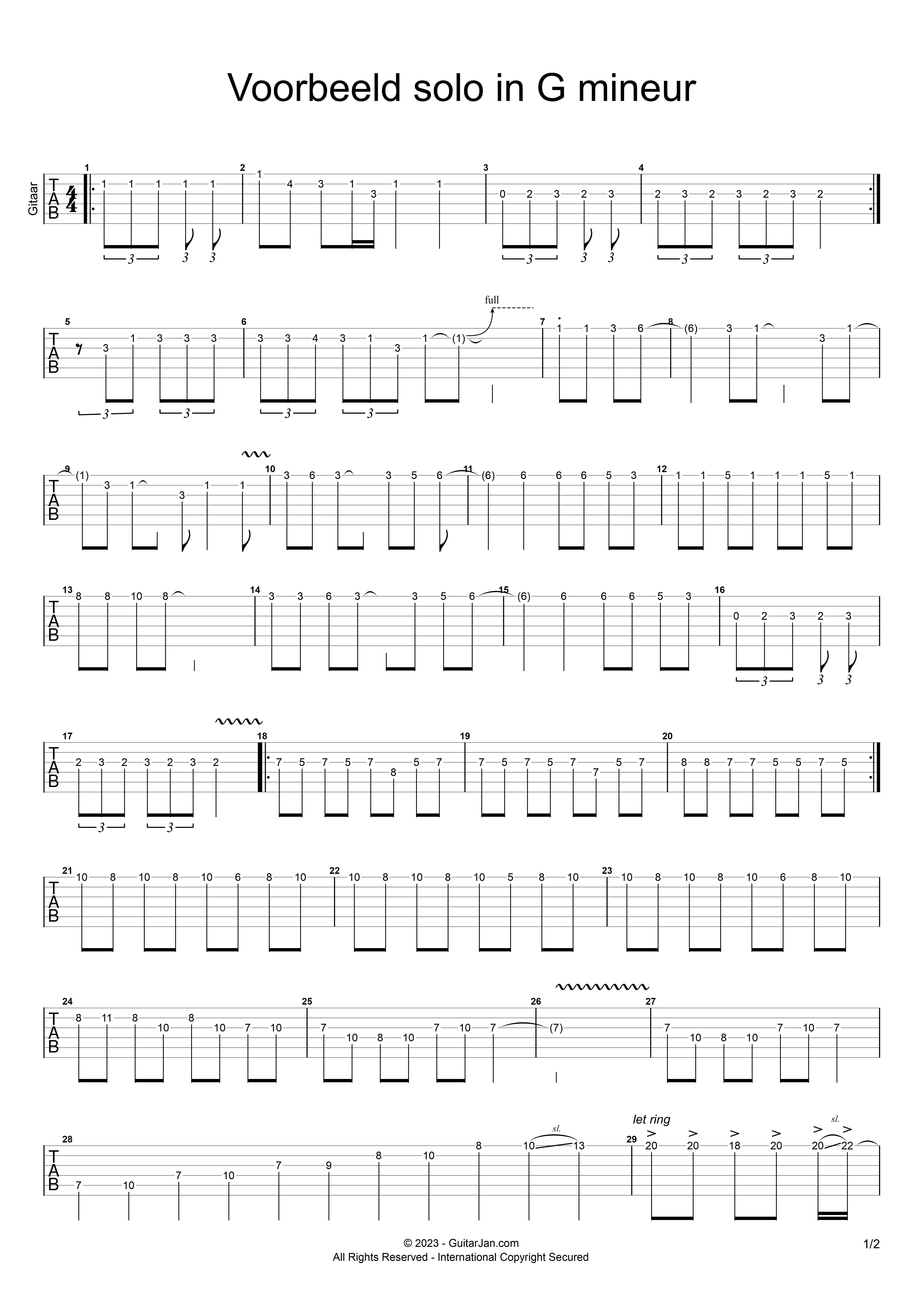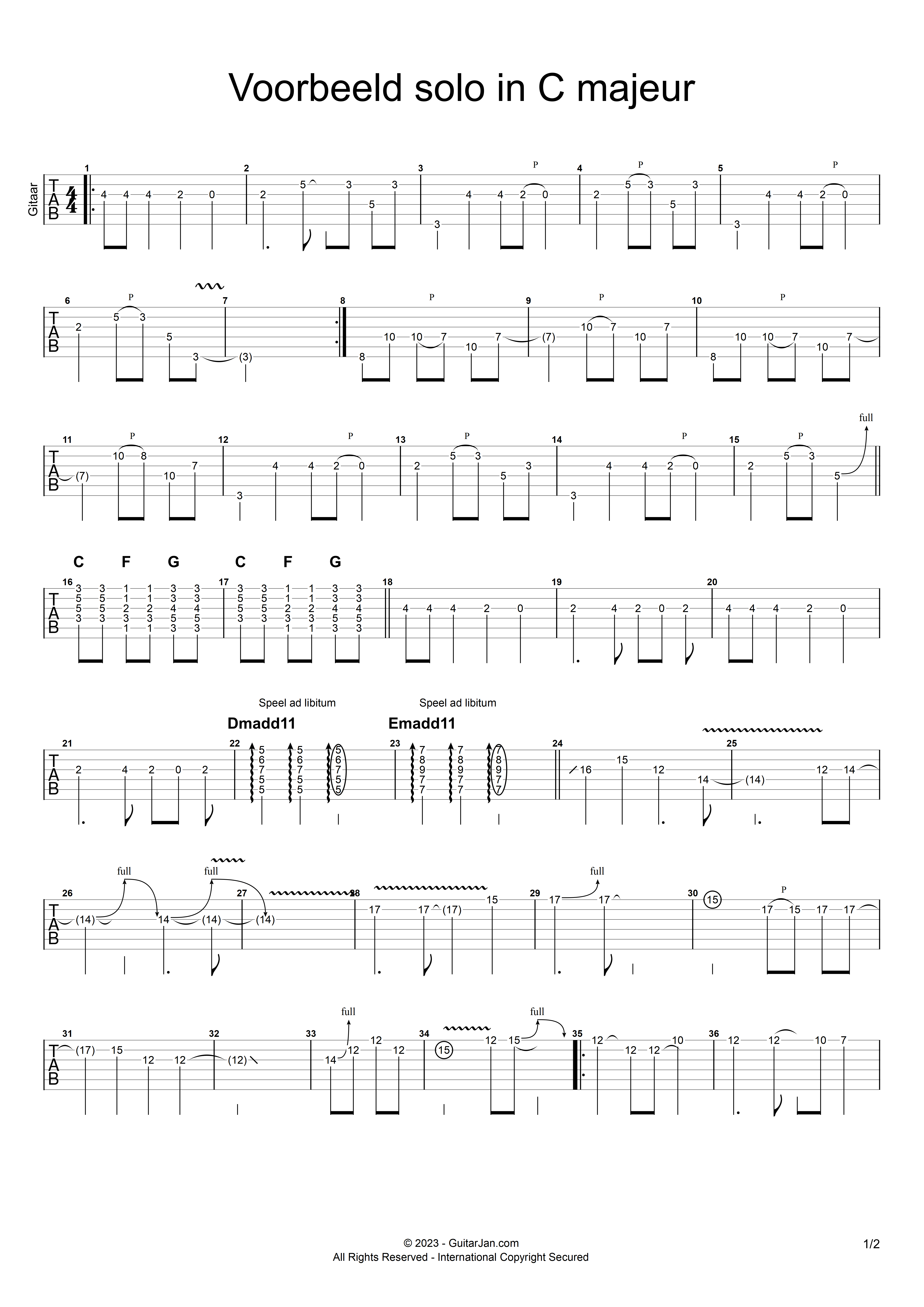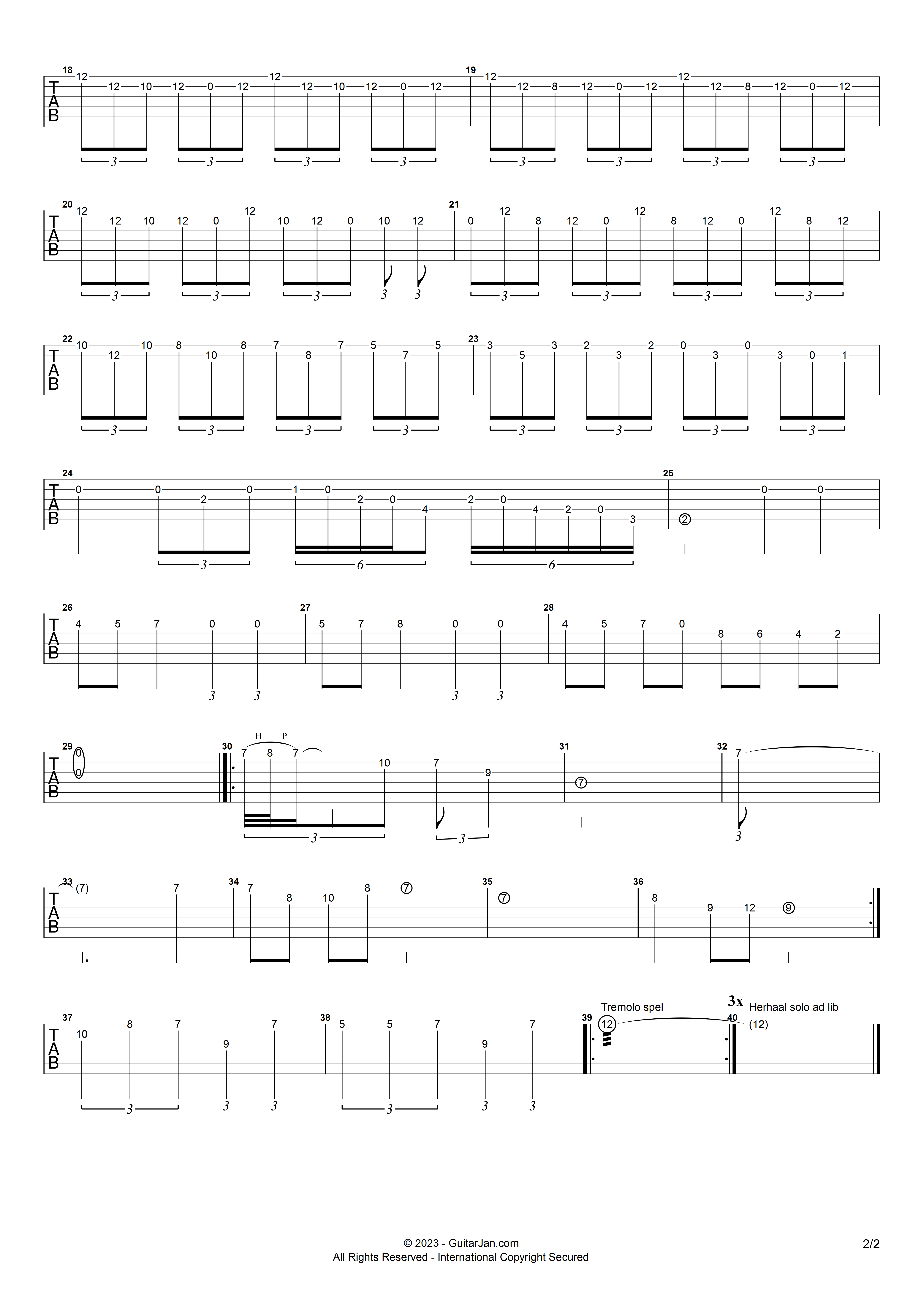 De solo's zijn zodanig gearrangeerd, dat de tabulatuur maximaal 2 pagina's beslaat, en door je beeldscherm volledig te benutten, kun je beide pagina's