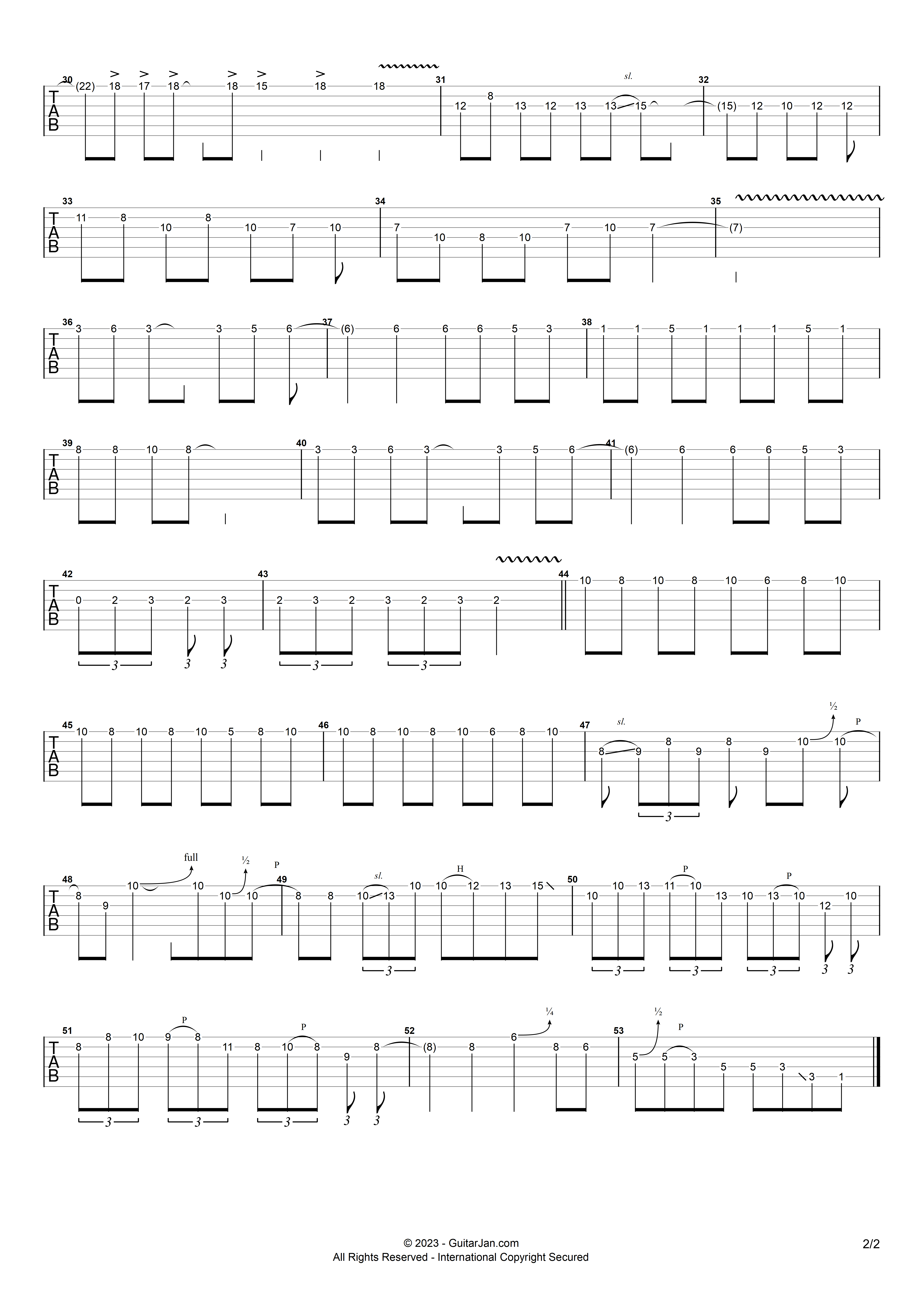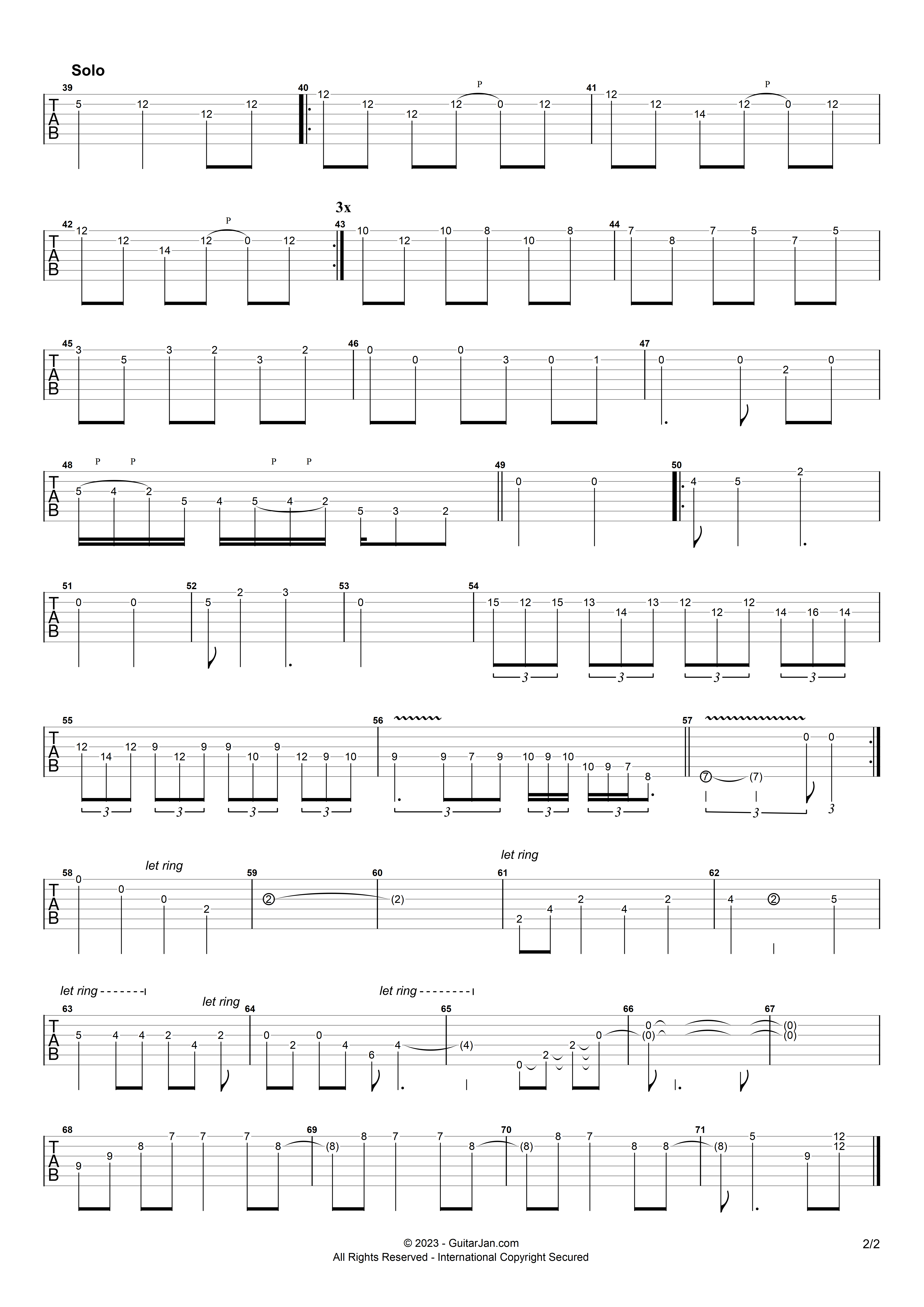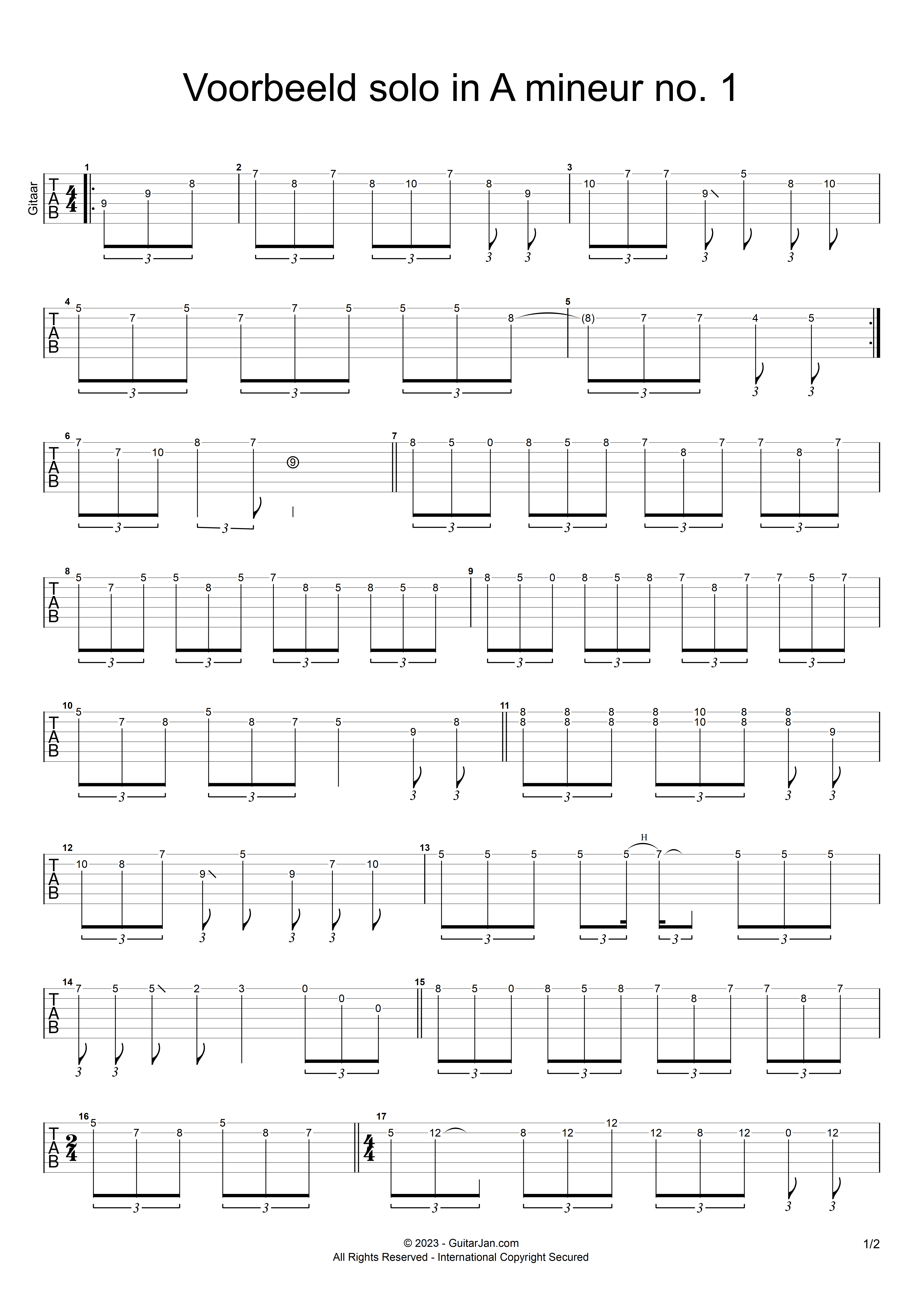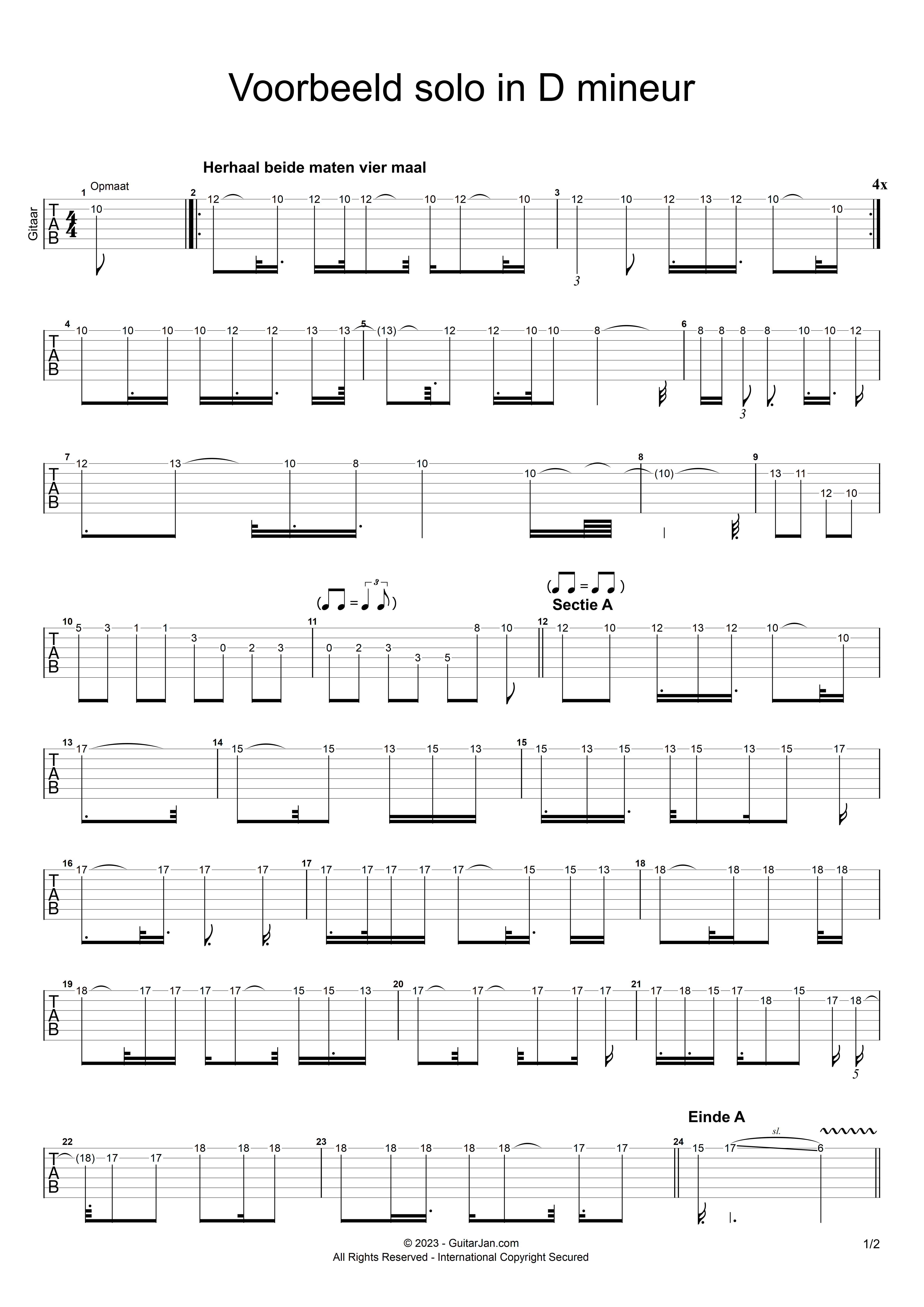 De solo's zijn zodanig gearrangeerd, dat de tabulatuur maximaal 2 pagina's beslaat, en door je beeldscherm volledig te benutten, kun je beide pagina's