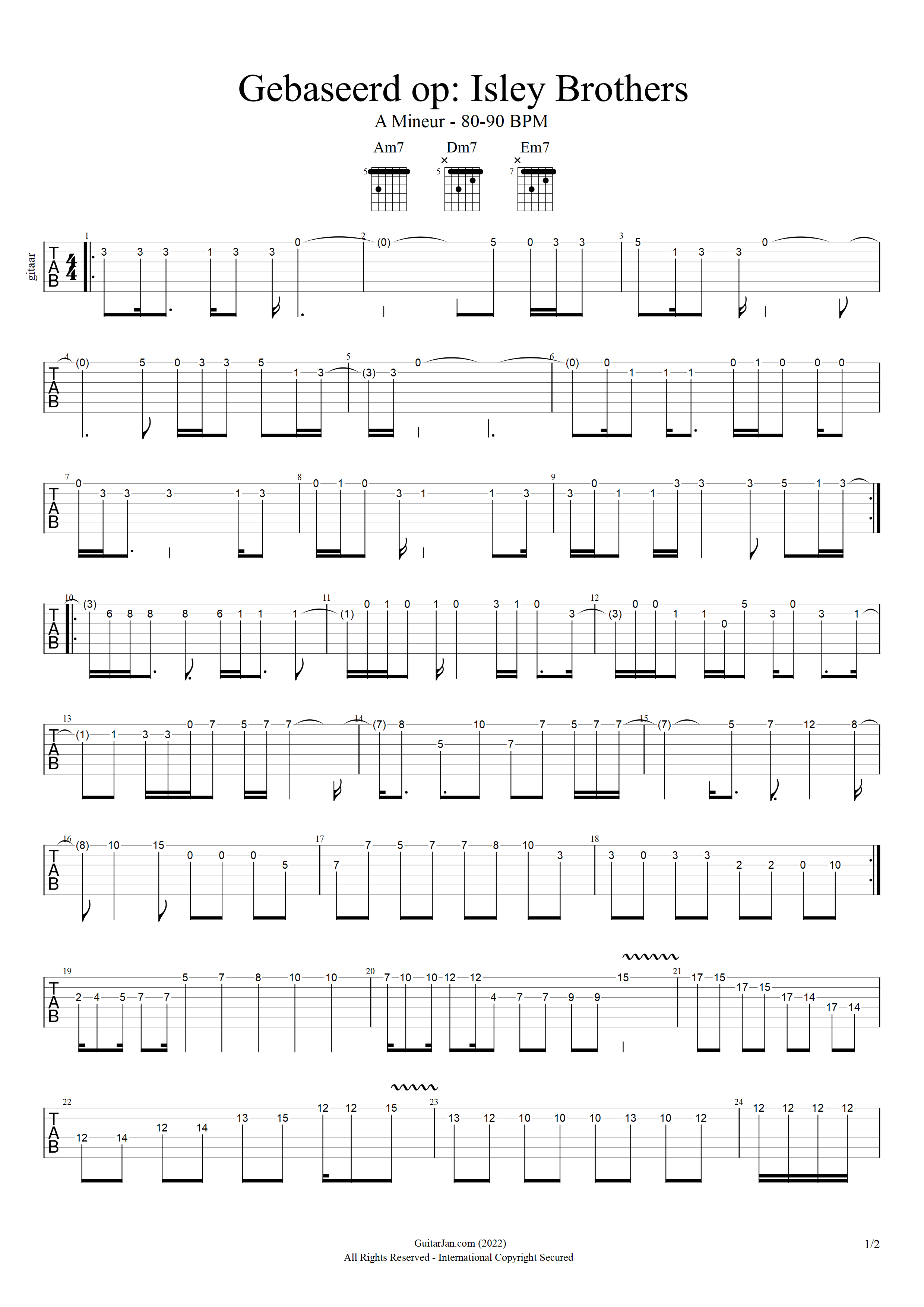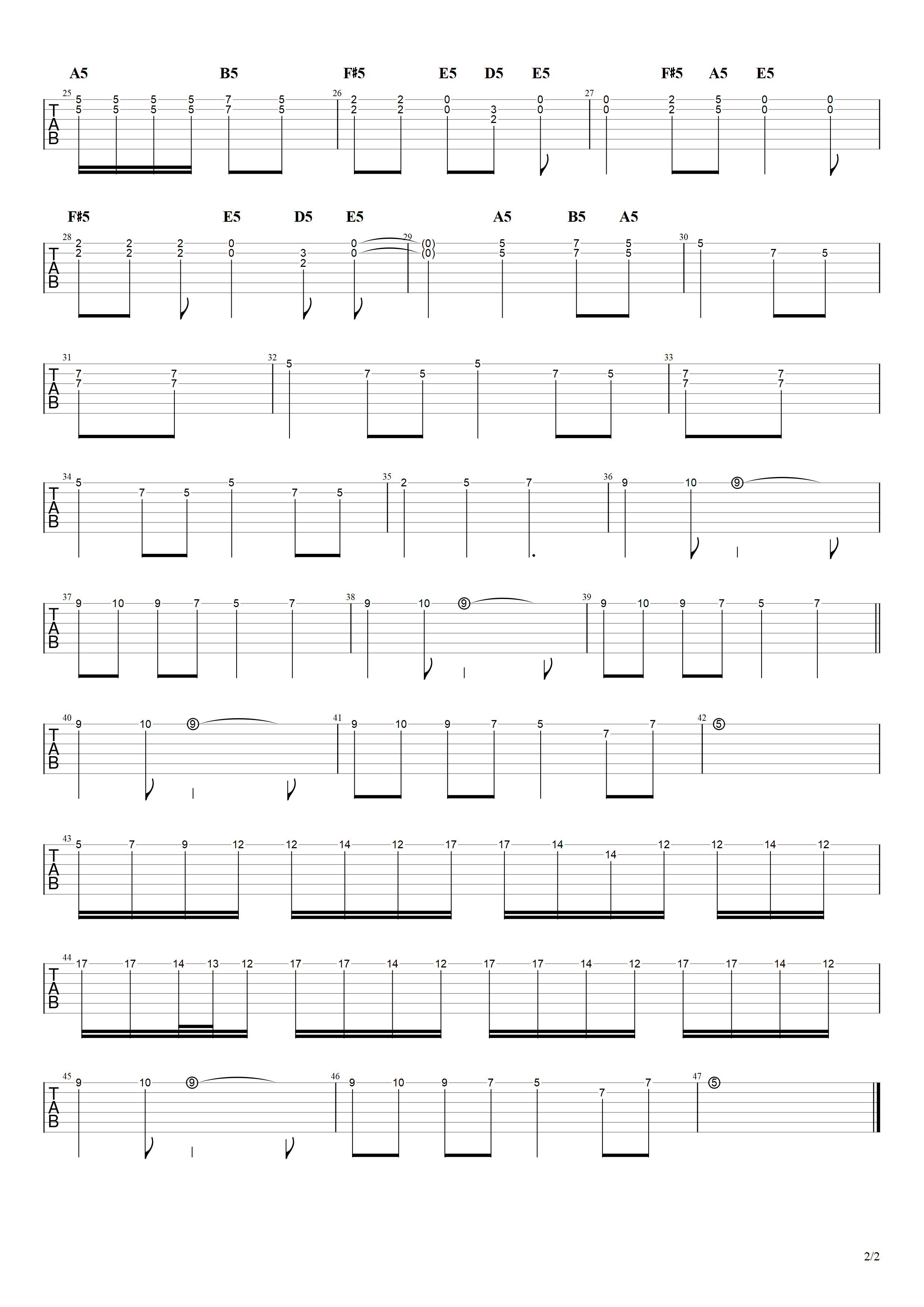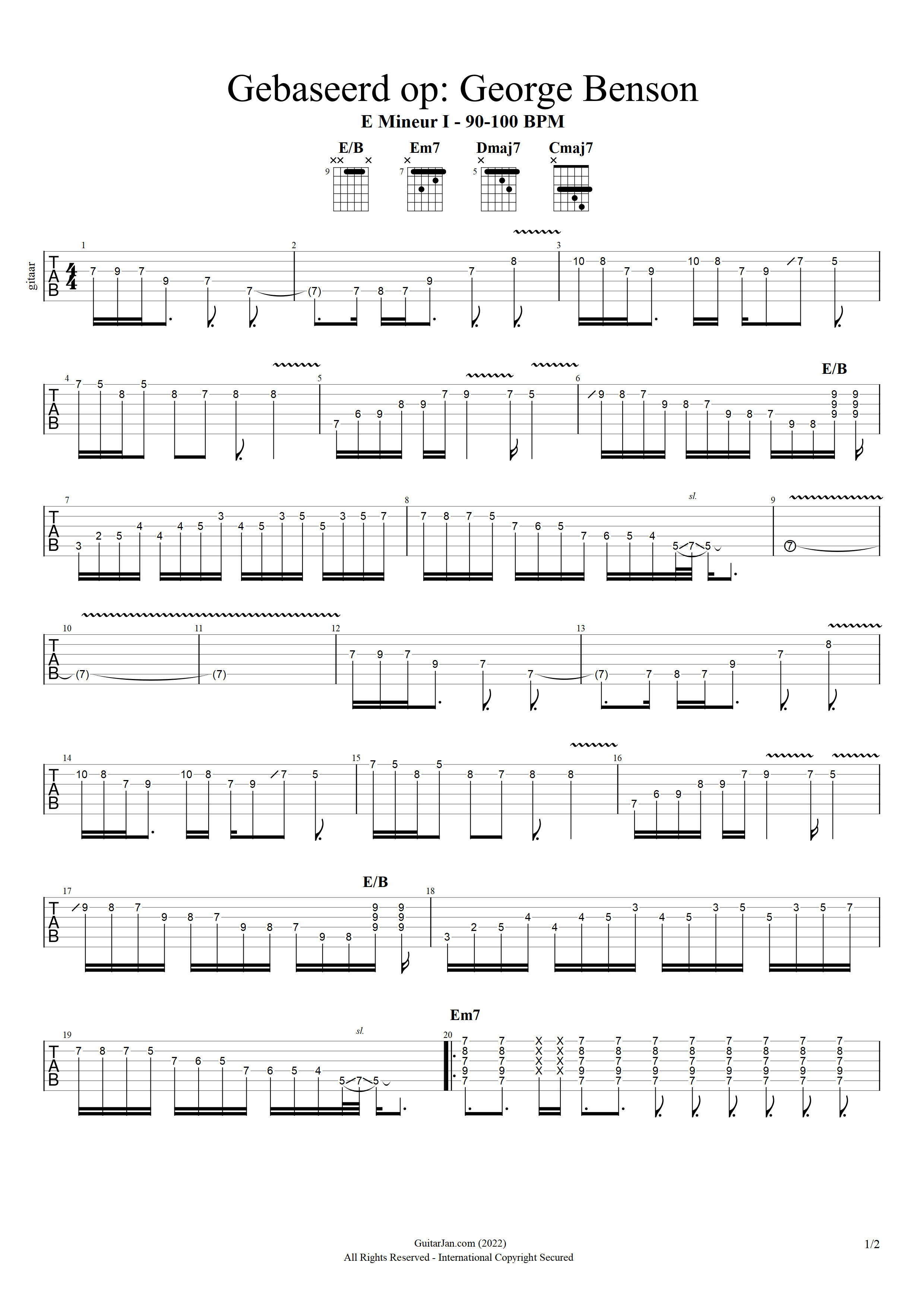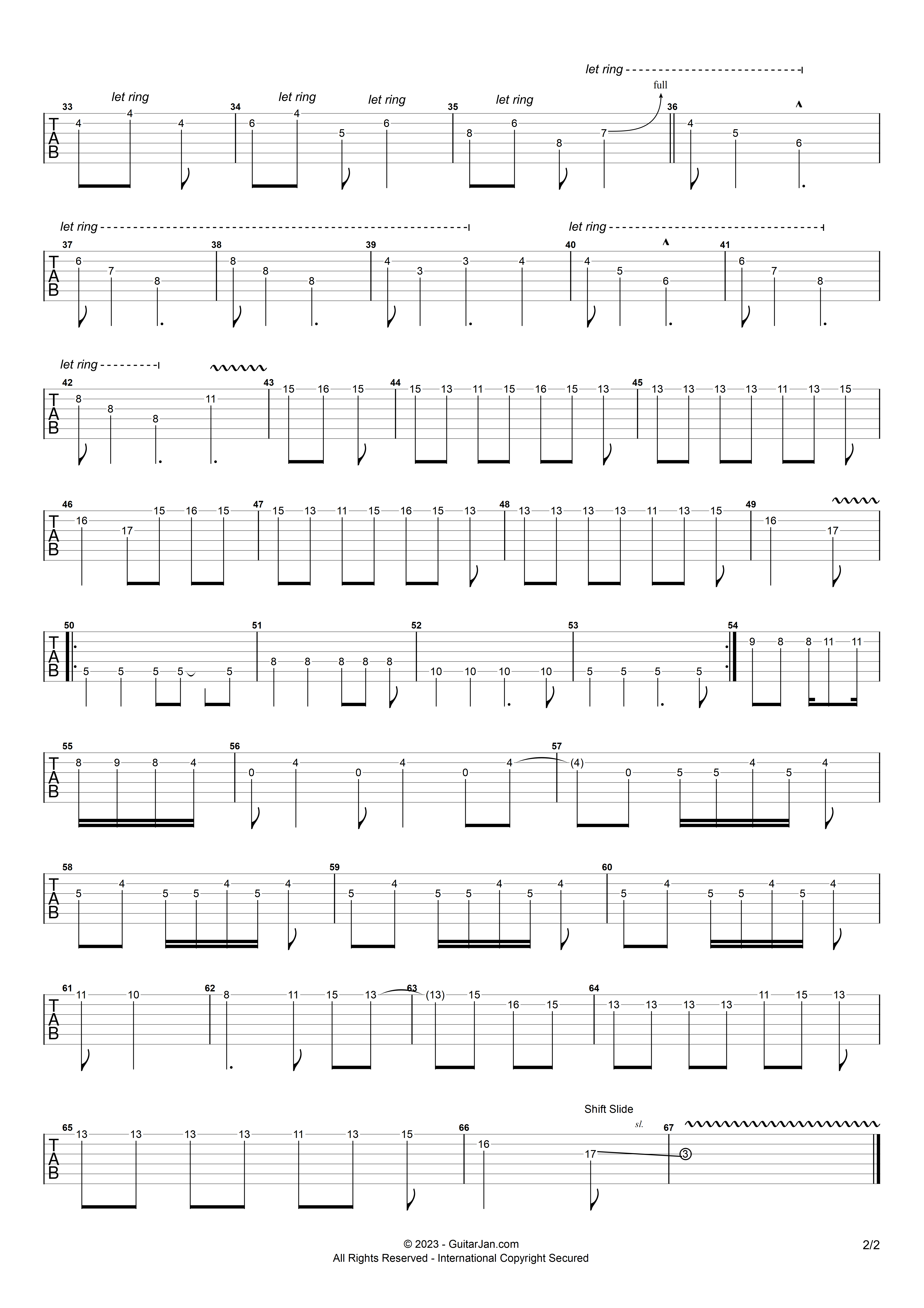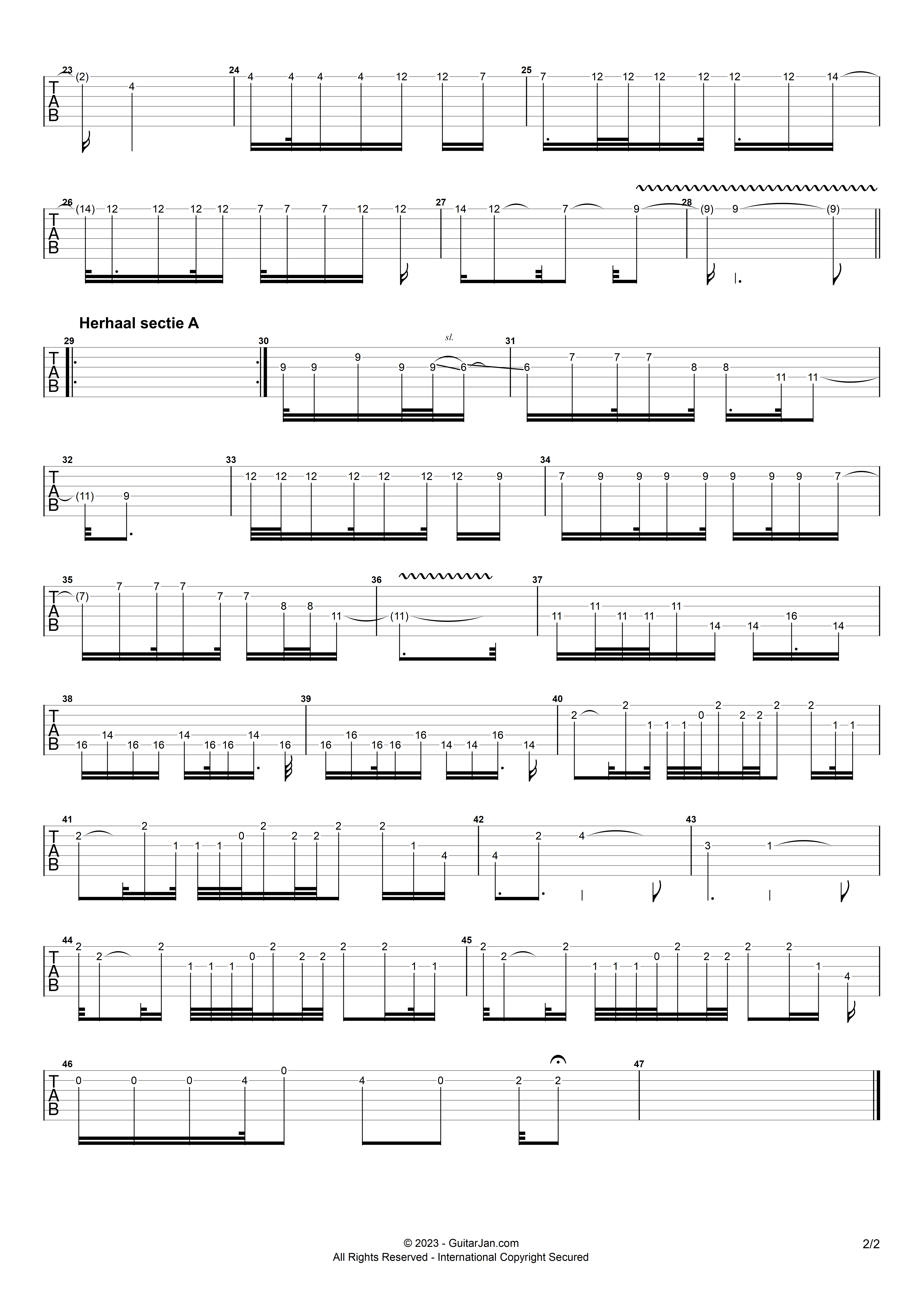 De solo's zijn zodanig gearrangeerd, dat de tabulatuur maximaal 2 pagina's beslaat, en door je beeldscherm volledig te benutten, kun je beide pagina's