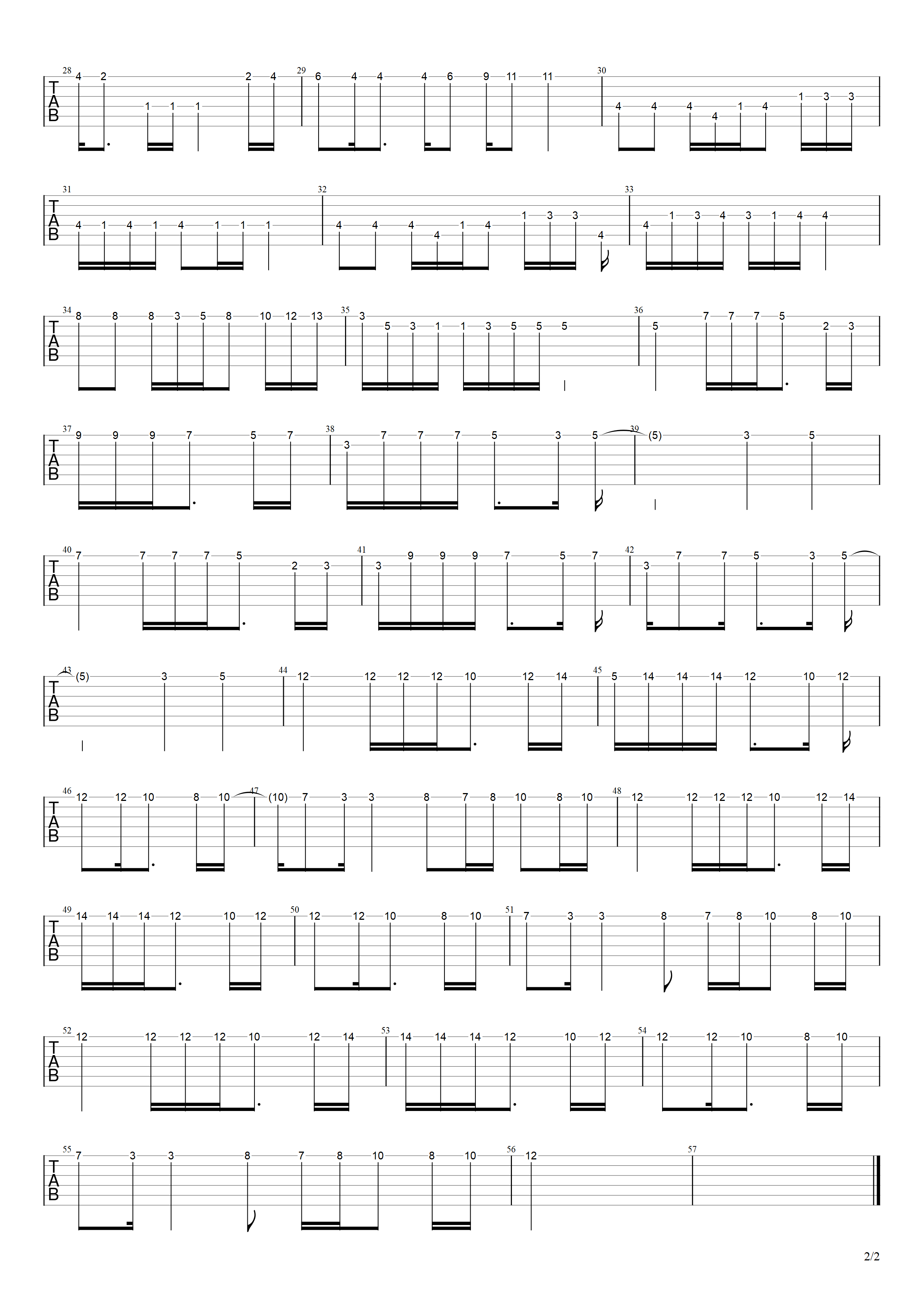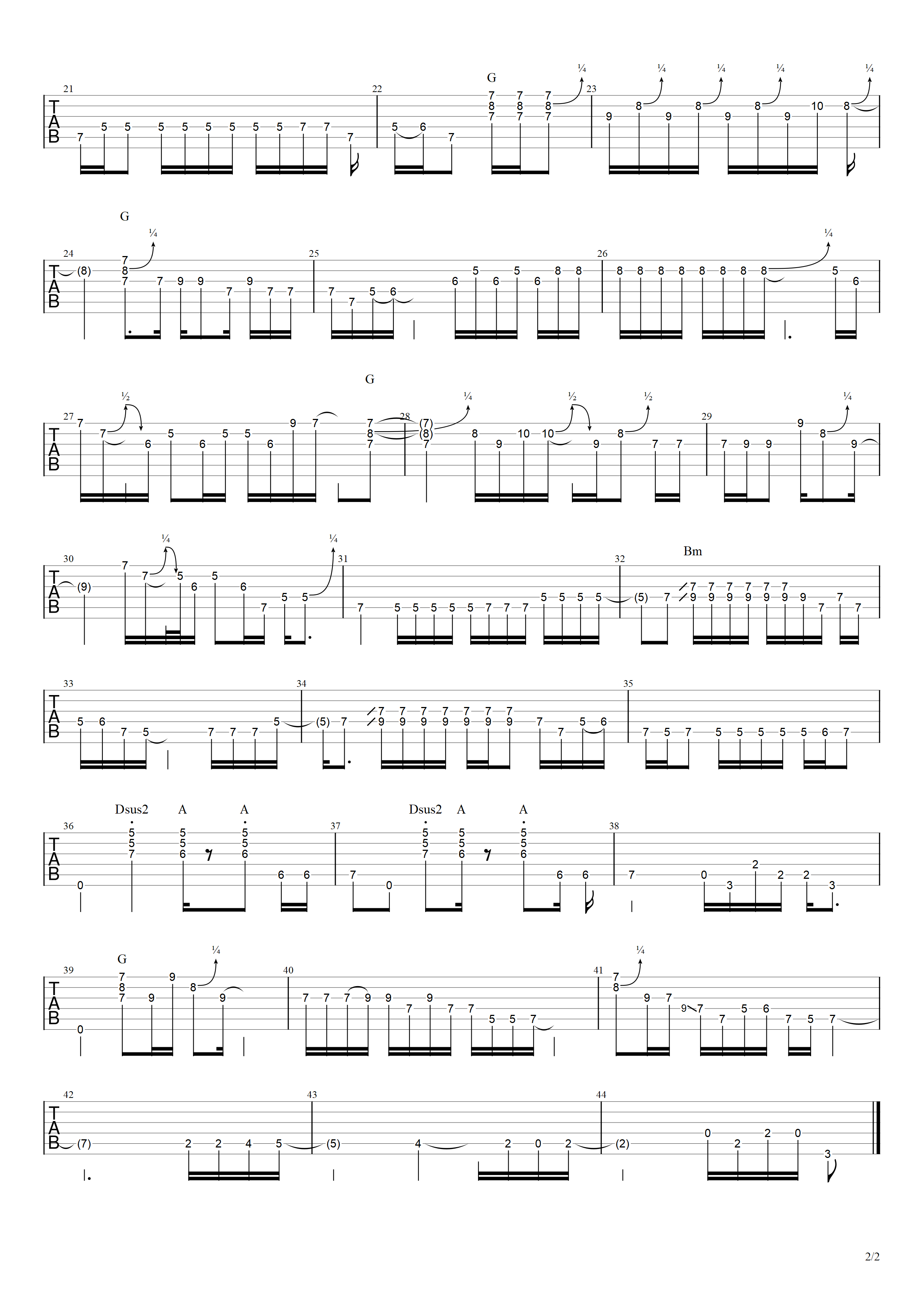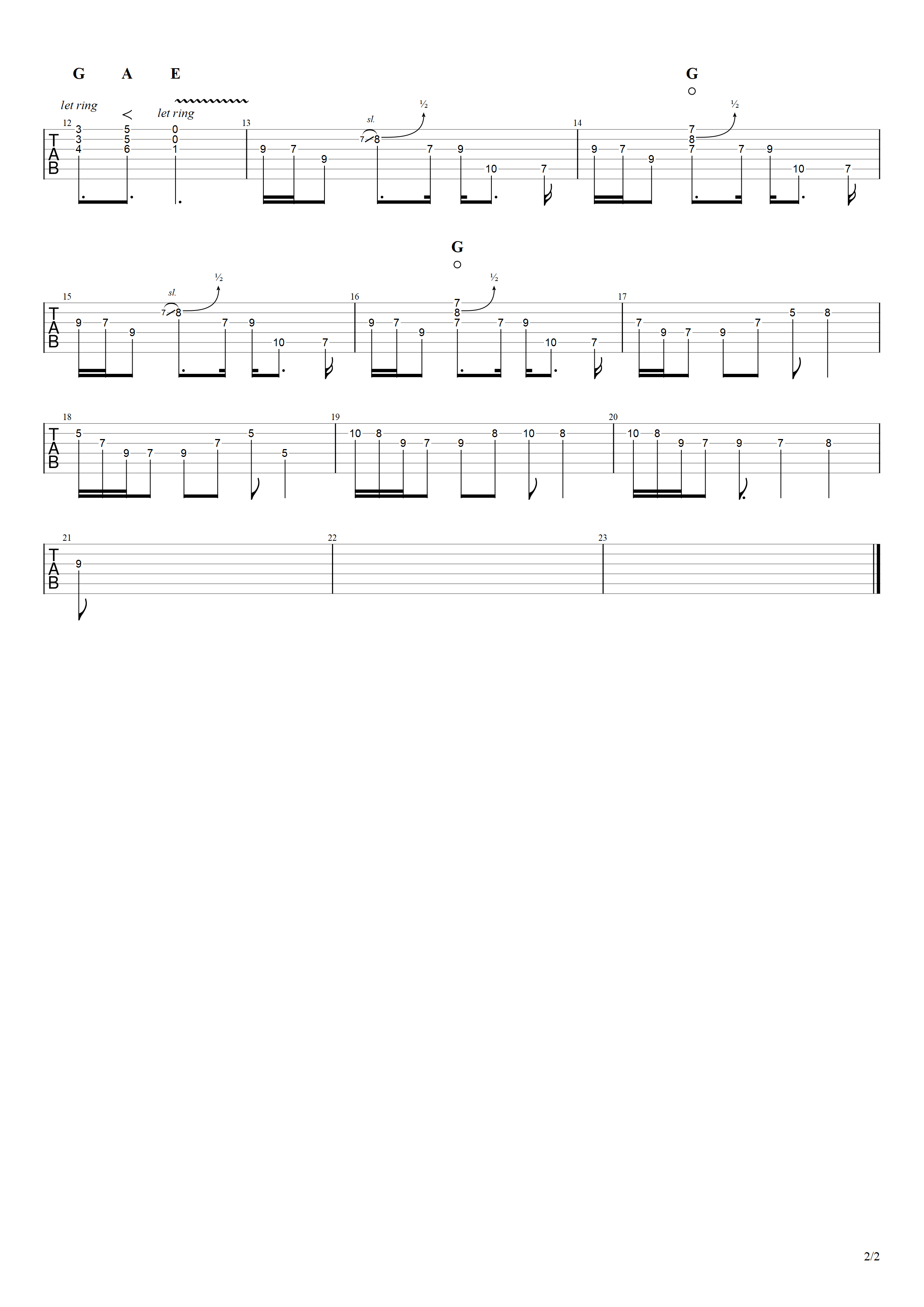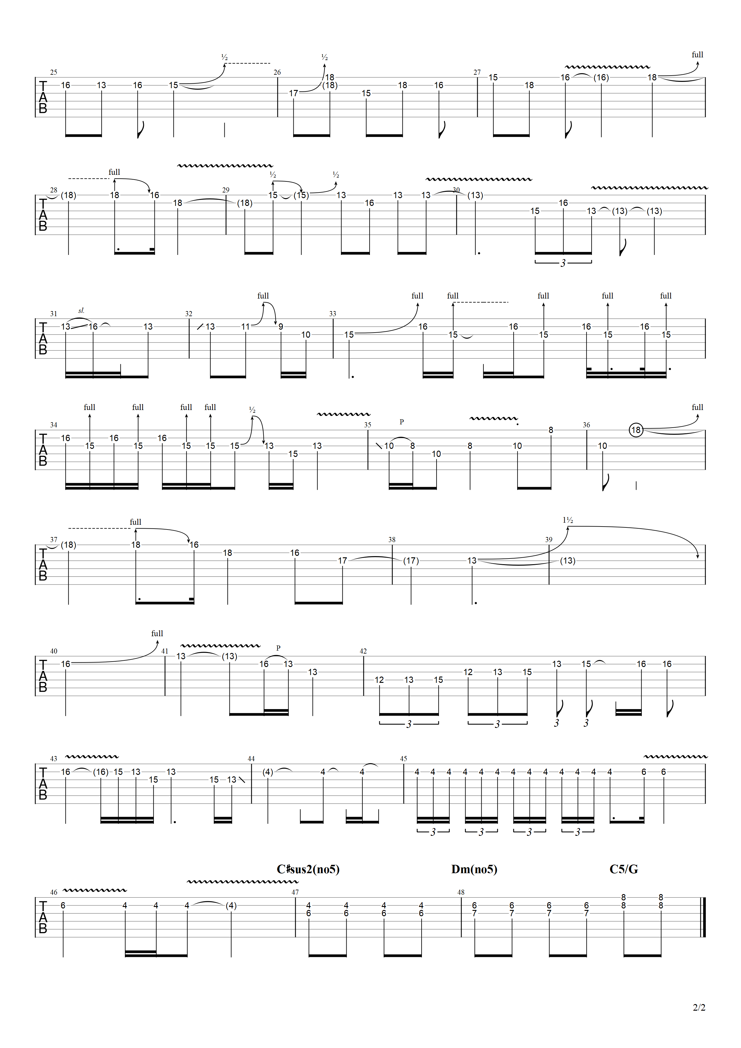 De solo's zijn zodanig gearrangeerd, dat de tabulatuur maximaal 2 pagina's beslaat, en door je beeldscherm volledig te benutten, kun je beide pagina's