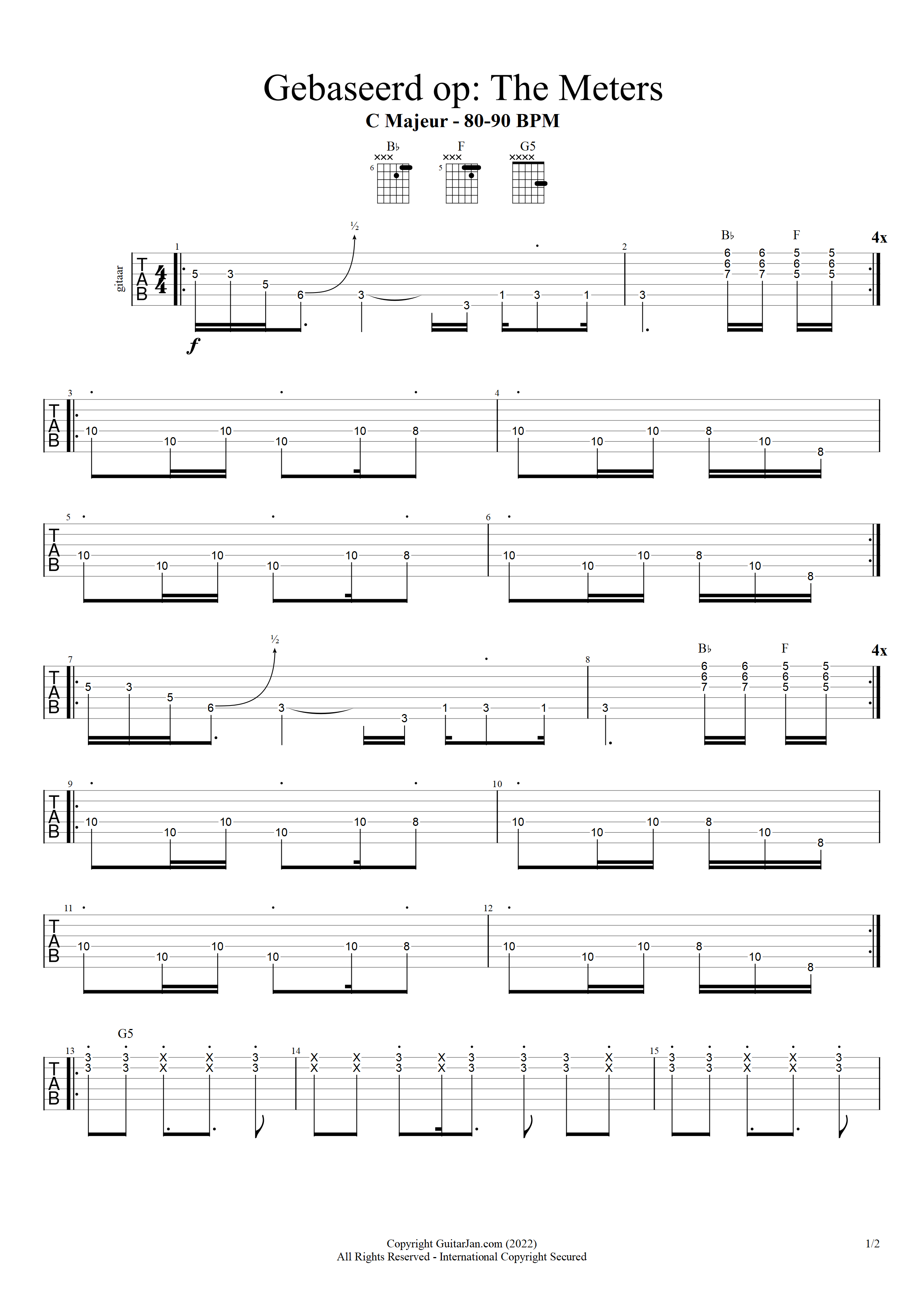 met welke backing track je je solo wilt gaan spelen. In de tabulaturen vind je het aantal BPM (Beats Per Minute) terug, maar dat is slechts