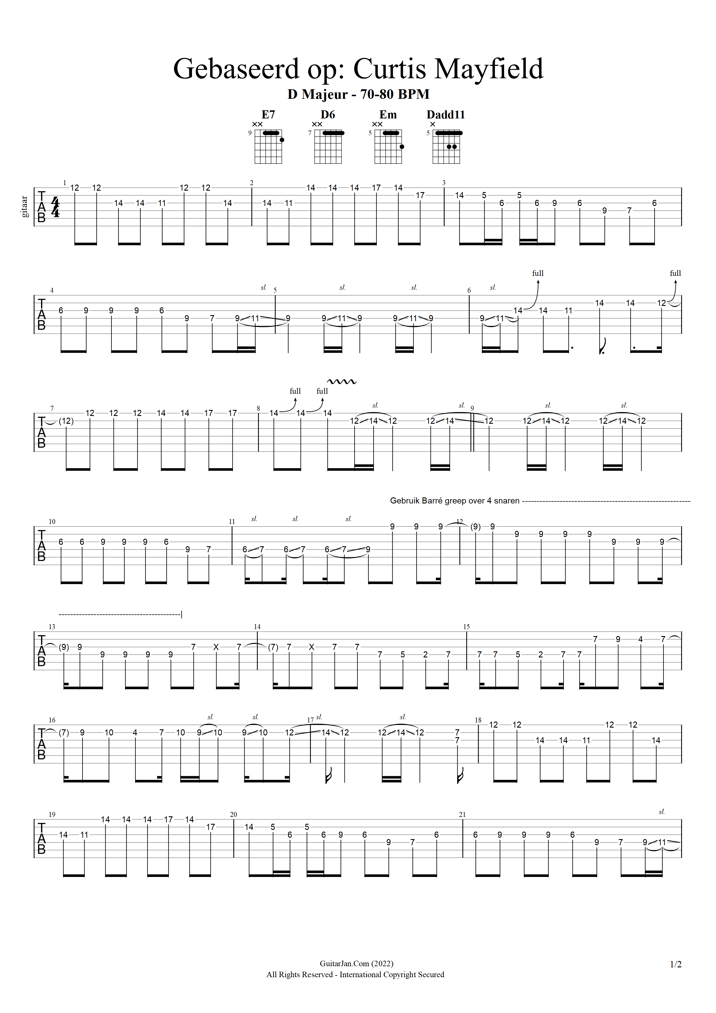 zodanig gearrangeerd, dat de tabulatuur maximaal 2 pagina's beslaat, en door je beeldscherm volledig te benutten, kun je beide pagina's