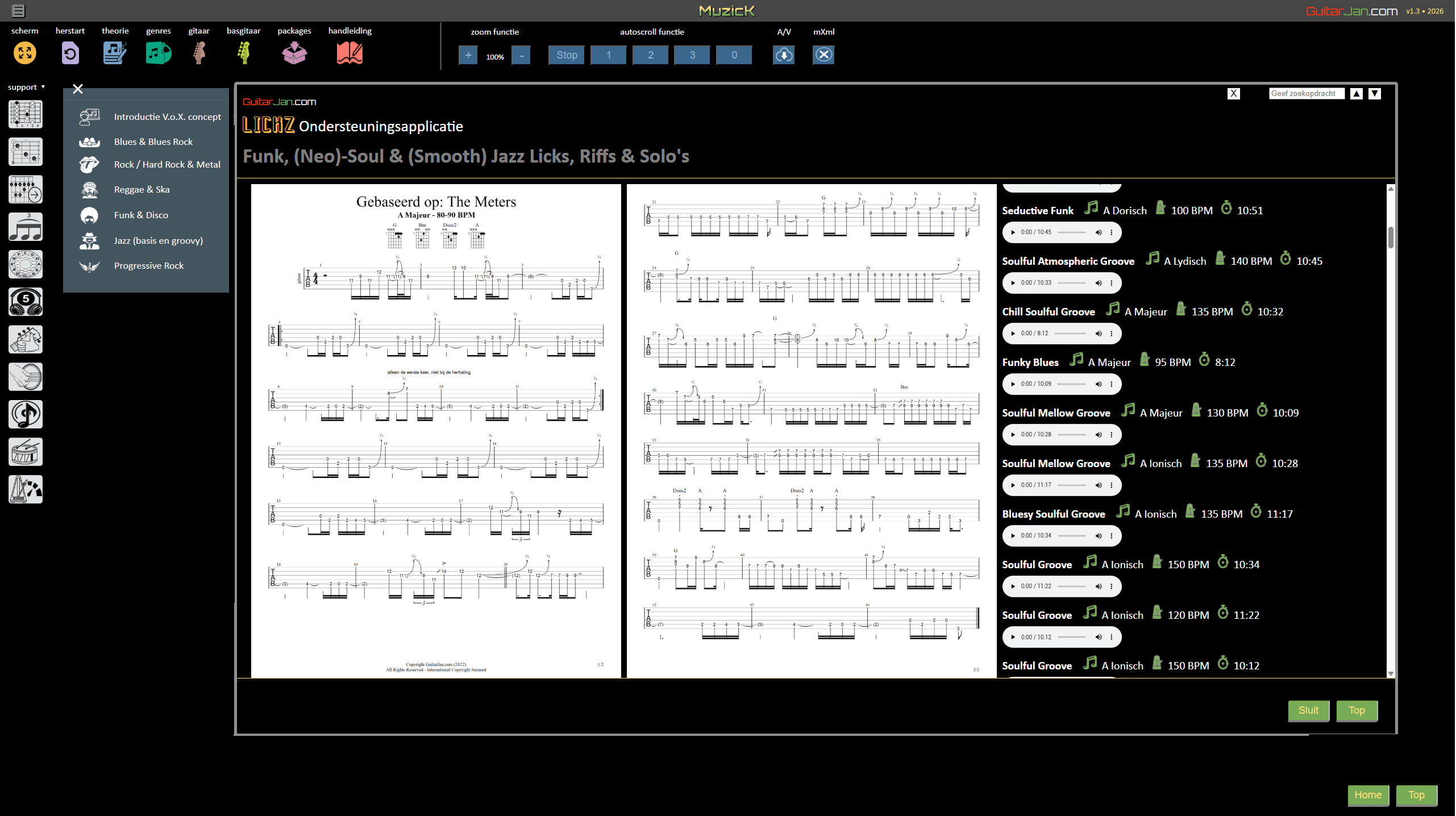 aan de gitarist tijdens studie, oefeningen of samen spelen met mede-musici. Deze support modules zijn in de zogeheten "GENIUZ" cyclus opgenomen, hebben
