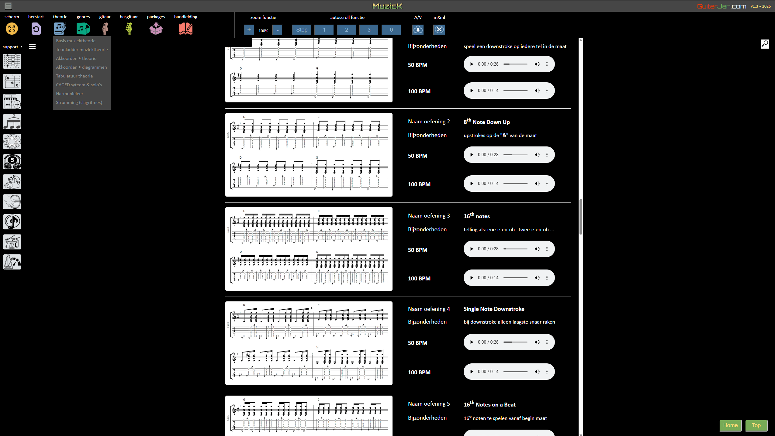 | StrumGeniuz.Voor 13 verschillende slagritmestijlen worden in totaal meer dan 130 varianten van slagritmes geïntroduceerd, en verduidelijkt door middel van video's. | |