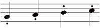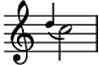 In de notenbalken hierboven is bijvoorbeeld een uitgangsnoot de c in het klein octaaf, en de doelnoot de c1 in het