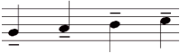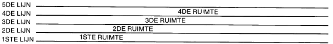 vijf lijnen met vier ruimtes daartussen. De vijf lijnen worden van onderen af genummerd: de eerste lijn is de onderste lijn,