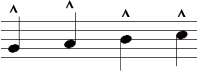 We doen dit niet door de noot hoger te schrijven, maar door een speciaal teken direct vóór de noot te plaatsen. Dit teken