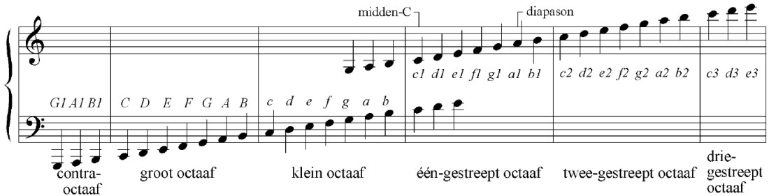 "A met een mol", enzovoorts. Deze noten hebben echter ook een eigen naam gekregen.