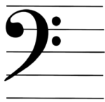 Een andere sleutel die je wellicht nog eens een keer kunt tegenkomen, is de F-sleutel. De F-sleutel wijst de plaats van de F aan.