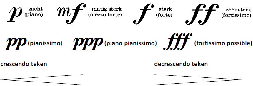 sterkte (toonsterkte) en timbre (klankkleur), alsmede door hun positie in het tijdsverloop van het muziekstuk.