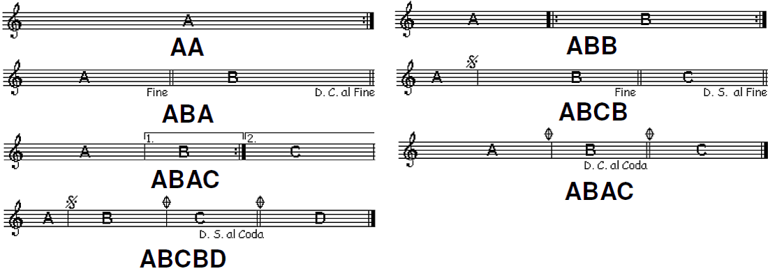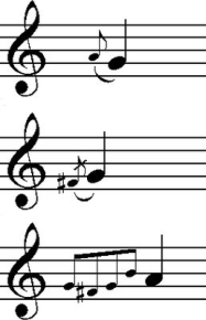 Veel ornamenten worden uitgevoerd als "snelle noten" rond een centrale hoofdnoot. Een (niet uitputtend) overzicht van