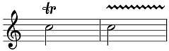 Dit is een snel herhaalde noot. Als de tremolo zich tussen twee noten bevindt, worden ze snel afwisselend gespeeld. Het aantal schuine strepen door de stam (of het aantal diagonale balken tussen twee noten) geeft de frequentie aan om de noot te herhalen (of af te wisselen).