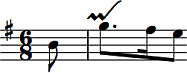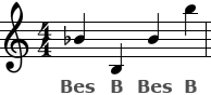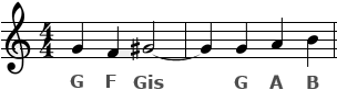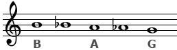 tonen van de B naar de G (zie de afbeelding van de piano hiervoor), met behulp van mollen opschrijven, zoals je hiernaast ziet.