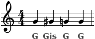 Net zo geeft bijvoorbeeld een G met een kruis dezelfde toon aan als een A met een mol.