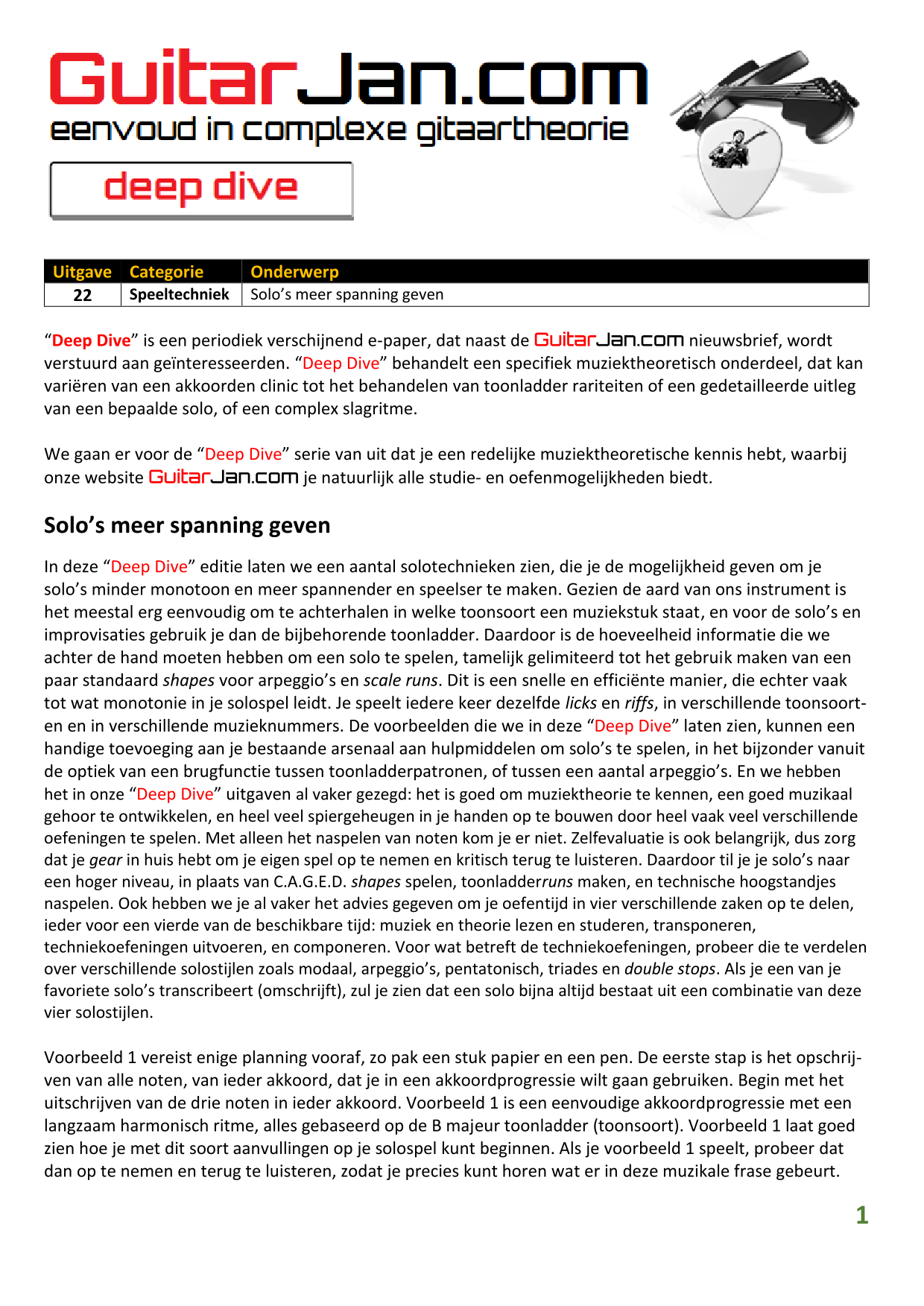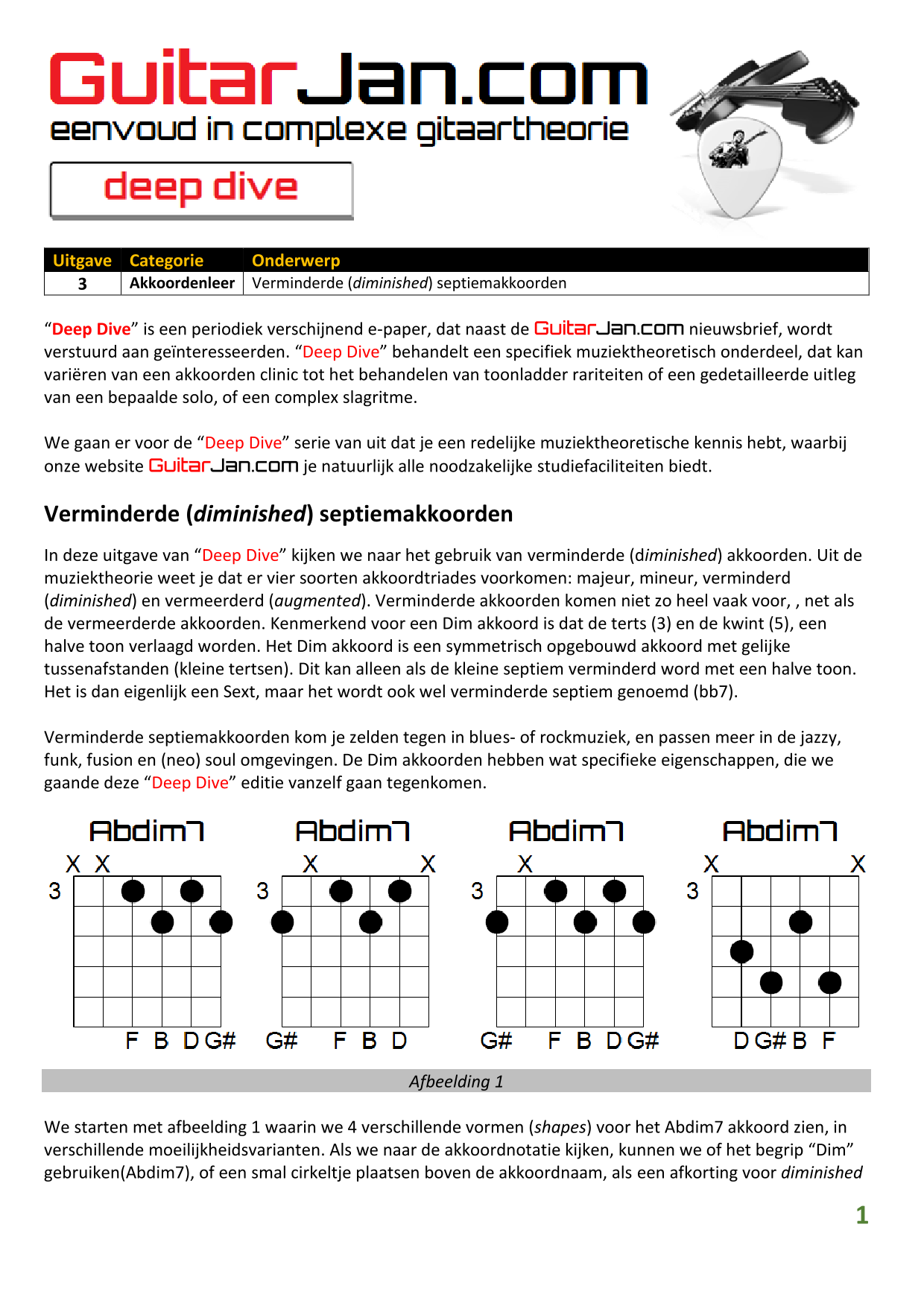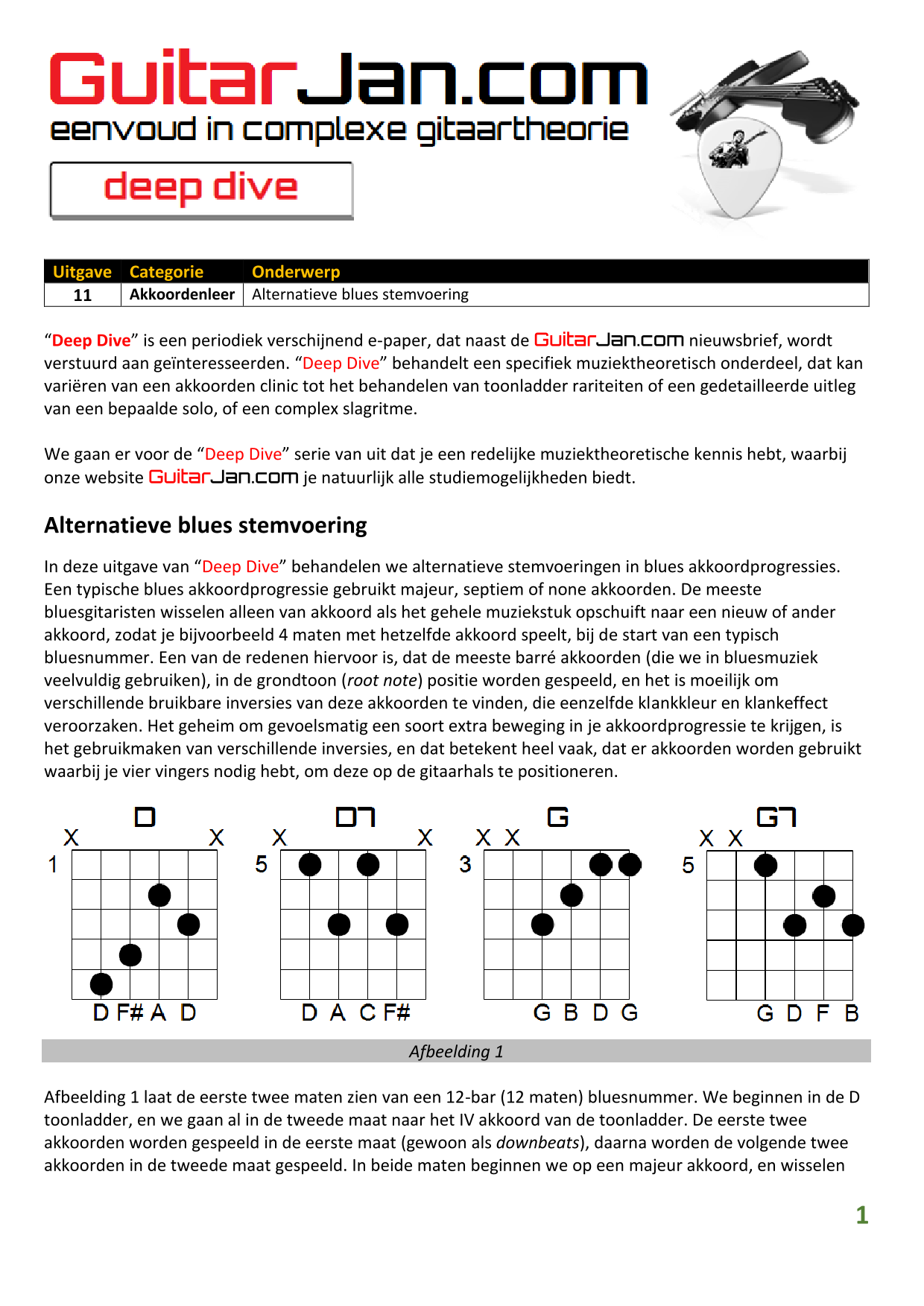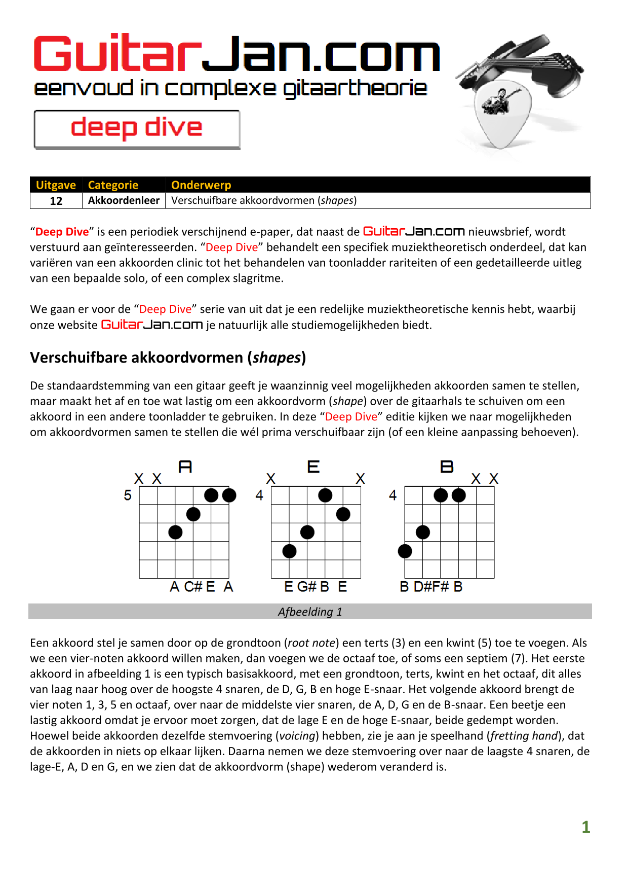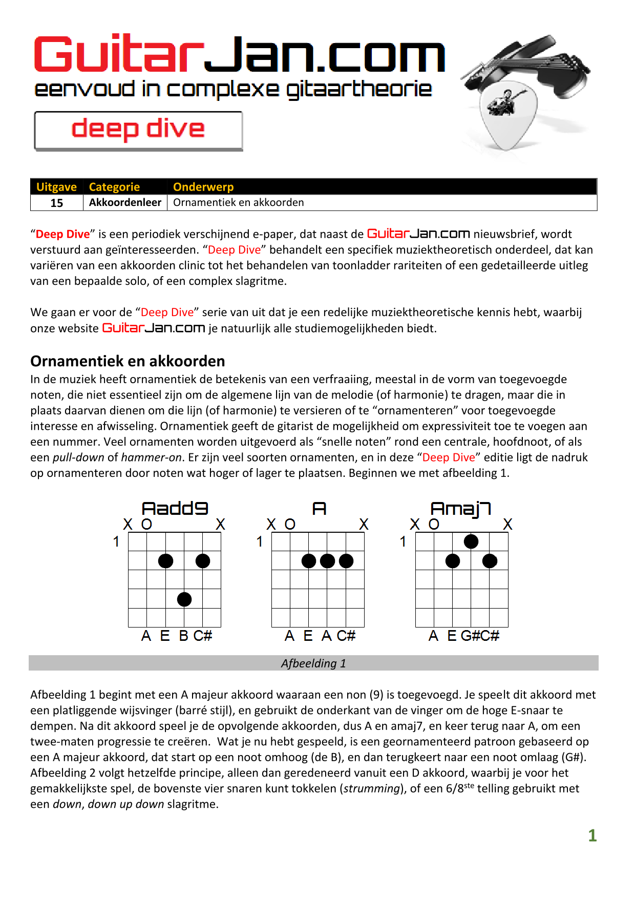 01 Akkoorden in hoge posities - Deel 1 02 Vermeerderde (augmented) akkoorden 03 Verminderde (diminished) septiemakkoorden 04 Twee-vinger akkoorden 05 Akkoorden in hoge posities - Deel 2 06 None (9) en undecime (11) akkoorden 07 Uitgestelde (suspended) akkoorden 08 7#5 (aug) akkoorden 09 Tredecime (13) akkoorden 10 Funky stemvoering 11 alternatieve Blues stemvoering 12 Verschuifbare akkoordvormen (Shapes) 13 Modale toonladderstructuren 14 Uitbreiden van akkoordprogressies