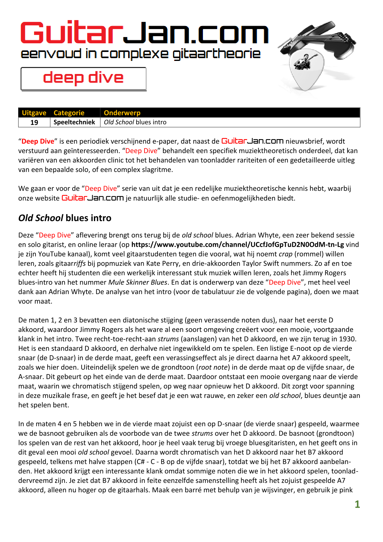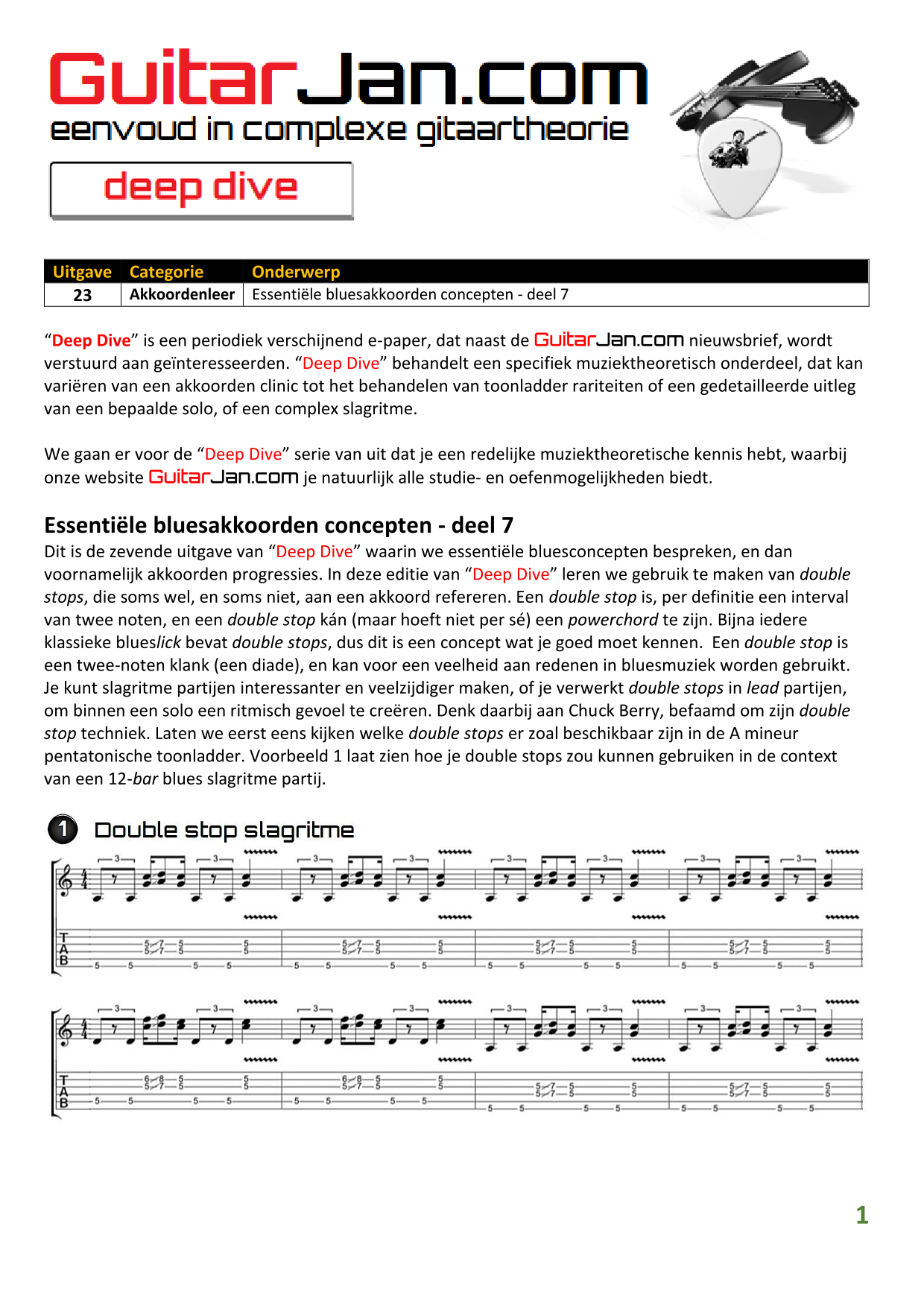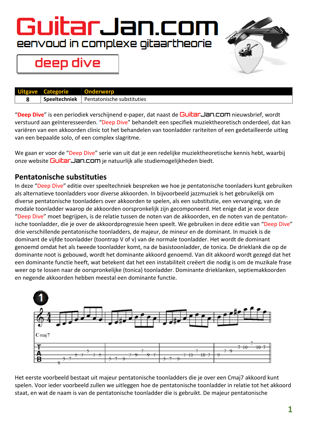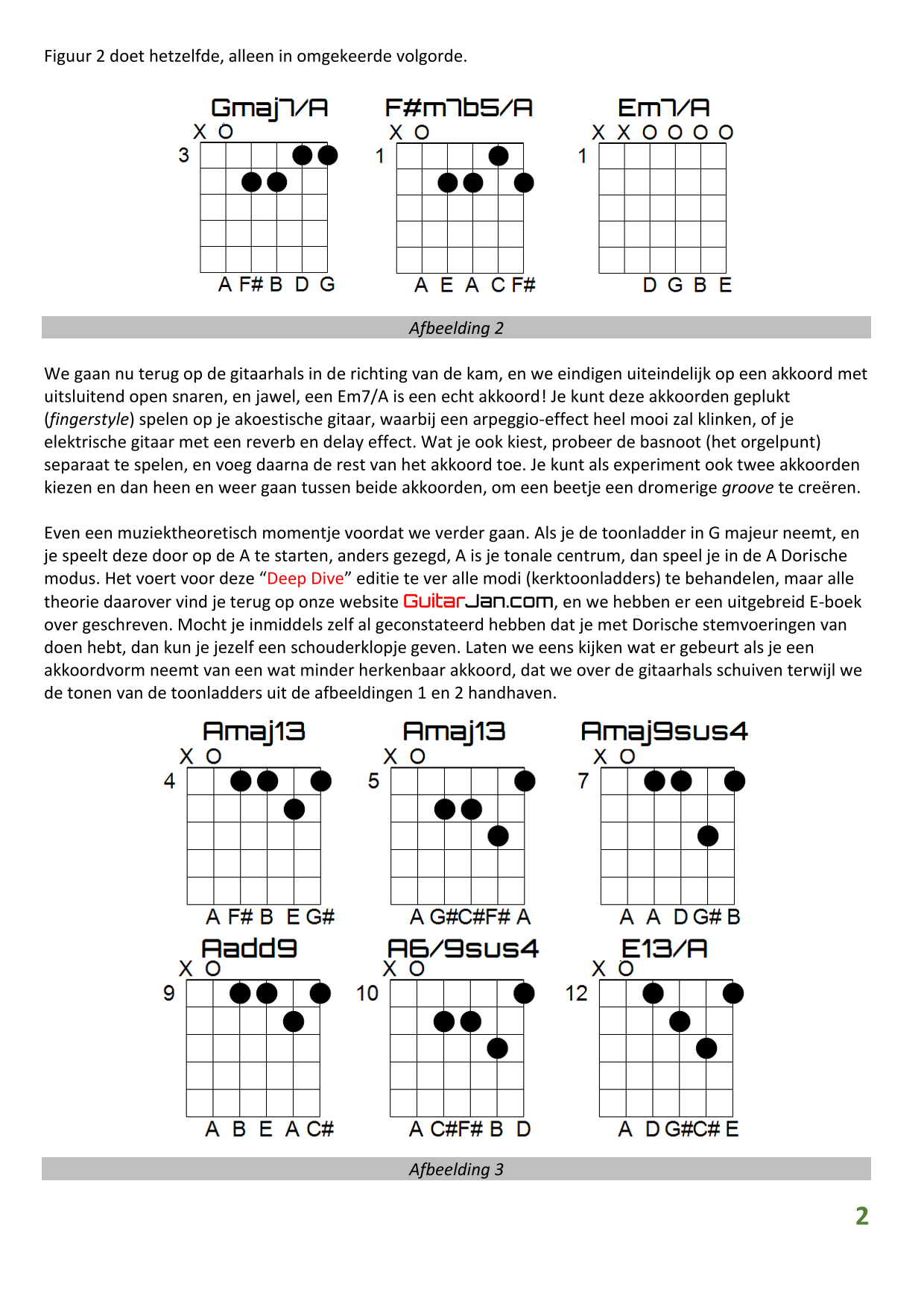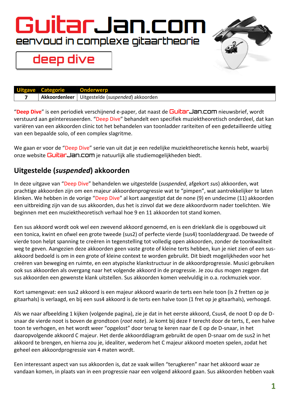 01 Akkoorden in hoge posities - Deel 1 02 Vermeerderde (augmented) akkoorden 03 Verminderde (diminished) septiemakkoorden 04 Twee-vinger akkoorden 05 Akkoorden in hoge posities - Deel 2 06 None (9) en undecime (11) akkoorden 07 Uitgestelde (suspended) akkoorden 08 7#5 (aug) akkoorden 09 Tredecime (13) akkoorden 10 Funky stemvoering 11 alternatieve Blues stemvoering 12 Verschuifbare akkoordvormen (Shapes) 13 Modale toonladderstructuren 14 Uitbreiden van akkoordprogressies