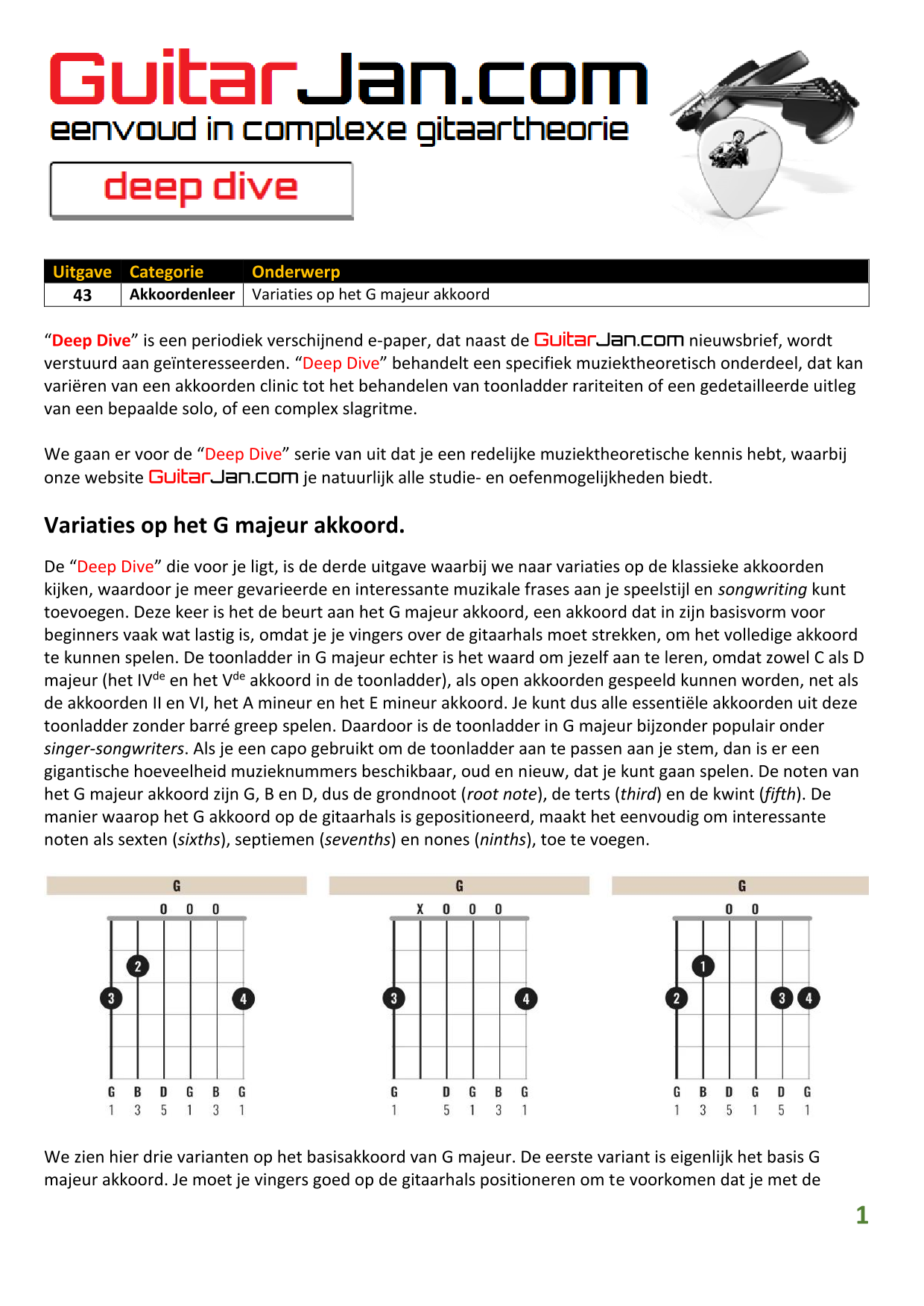 43 Variaties op het G majeur akkoord