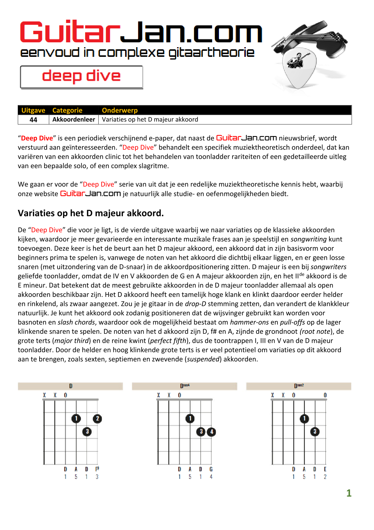 44 Variaties op het D majeur akkoord