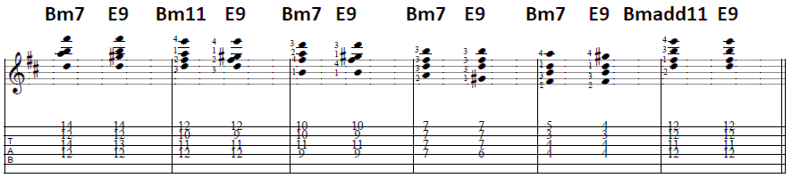 zoeken op internet, of het kopen van (song)books, gemakkelijk achterhalen. Een prachtige serie boeken met alles erop en eraan voor funk, jazz, soul etc.,