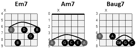 een noot verschil hebben, en hetzelfde geldt weer voor voor het 7 en het Mineur 7 akkoord.