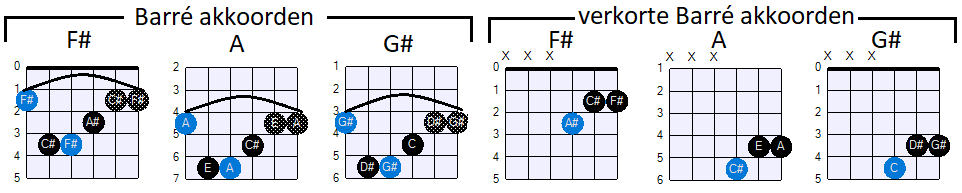 wat anders, omdat we daarvoor zogeheten "verkorte" Barré akkoorden voor kunnen gebruiken. We weten
