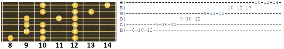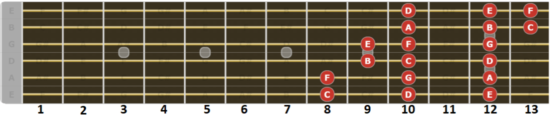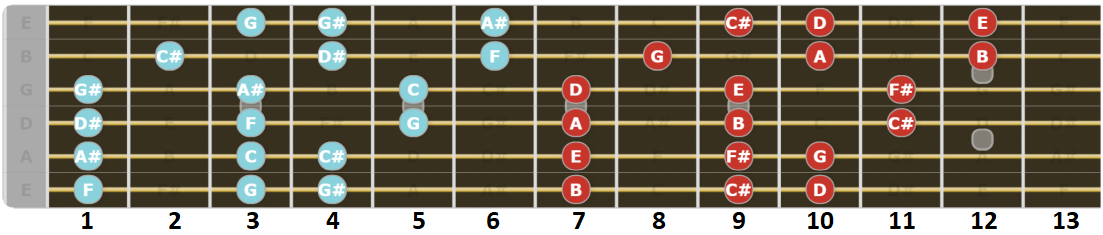 uitstekend voor rocksolo’s. Veel bekende rockgitaristen voegen hier en daar nog wat noten toe aan deze toonladder.