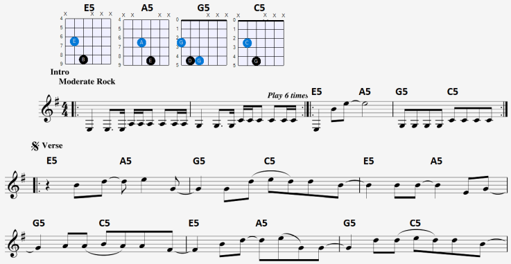 De Power Chords die in grote delen van de song door gebruikt worden. Voor de modulatie in de song gelden weer andere