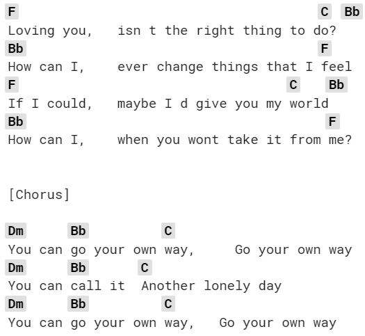 We geven een voorbeeld: de song "Go Your Own Way" van Fleetwood Mac staat in de toonsoort F majeur (Engels: F Major).