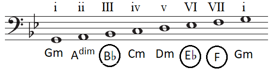 B♭ C D E♭ F G A B♭