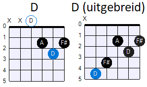 naar de D toonladder wilt maken, dan zien de akkoorden in de D toonladder er als volgt uit: