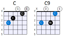 Welke spilakkoorden (gemeenschappelijke akkoorden) zijn er dus tussen de toonsoorten C-majeur en G-majeur? Dat zijn er 4: C, Em, G en Am.