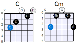 Stel nu in de toonsoort C-majeur het F-akkoord (F-A-C) aanpast naar Fm (F-A♭-C), dan heb