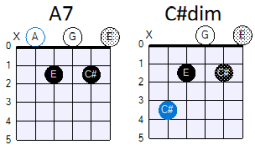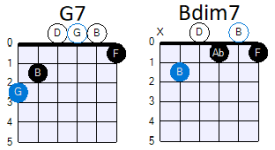 Verder klinkt een dim7-akkoord in een akkoordenprogressie het mooiste, als het akkoord dat erop volgt een halve toon hoger of