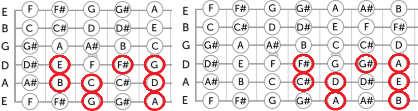 | Em | 1 x ♯ | E | F♯ | G | A | B | C | D | E |