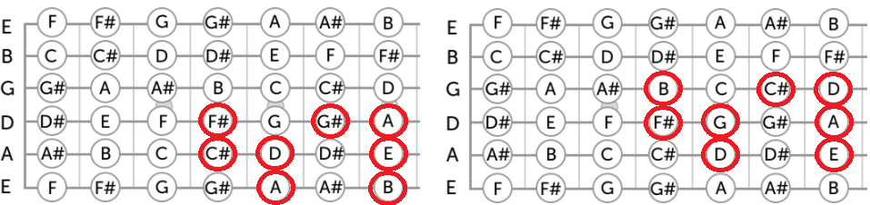 | F♯m | 3 x ♯ | F♯ | G♯ | A | B | C♯ | D | E | F♯ |