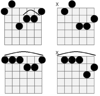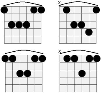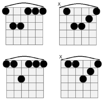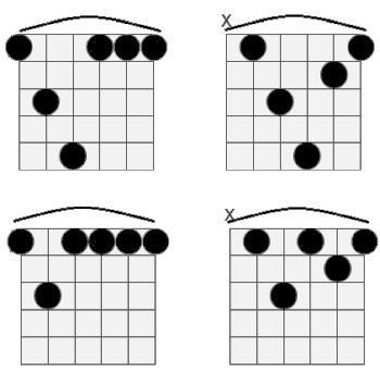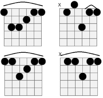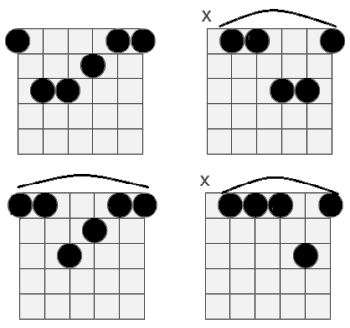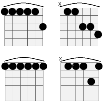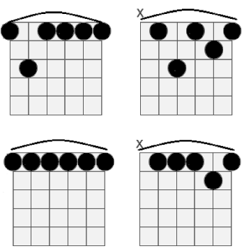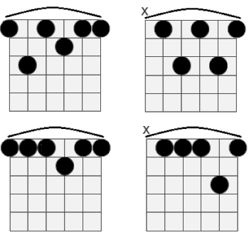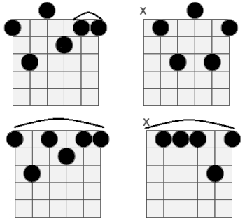 gebruiken verkorte barré akkoorden, waarbij ze in plaats van drie vingers om het akkoord te plaatsen, een akkoord nemen dat maar twee