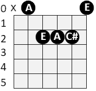 afhankelijk van waar je de Shape laat beginnen op de gitaarhals, als een A klinkt.
