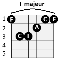grondtoon van het barré akkoord een A, en die vind je op de 6de snaar terug, op de 5de positie. Zo ook voor de