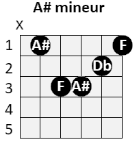 positie nemen, nu vanaf de 5de snaar, de A snaar. De C♯ mineur kun je op de 4de positie van de A snaar pakken.