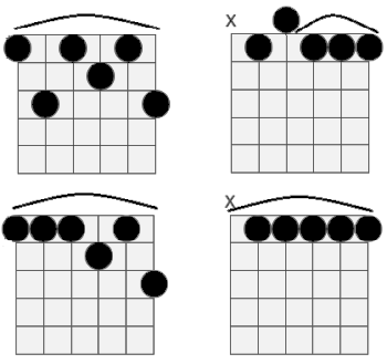 Een andere manier, en daarbij gebruik je twee barré Shapes, zie je hiernaast. Het voordeel hiervan is dat je voor de progressie van