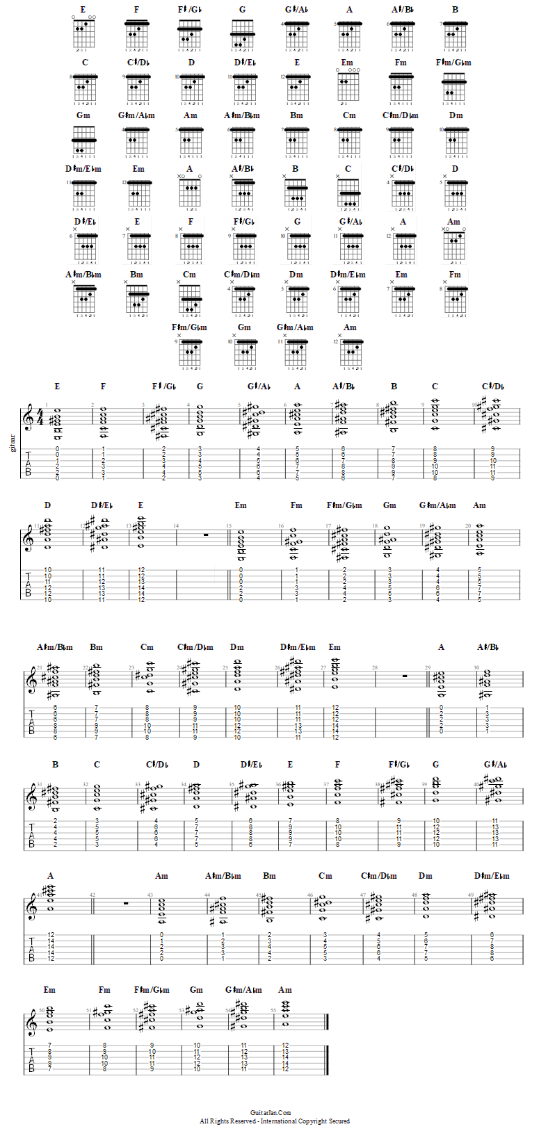 We beginnen met een aantal tabulaturen die je kunt gebruiken om een beter inzicht te krijgen in de verschillende barré