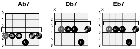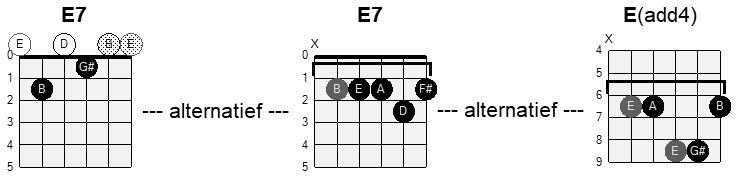 Veelgebruikte andere akkoordvormen in Blues/Bluesrock zijn: