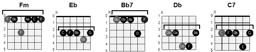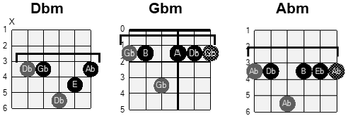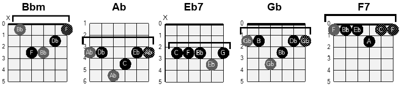 Je kunt deze akkoorden overigens daadwerkelijk met elkaar gebruiken (één barré Shape waarmee je een compleet funknummer