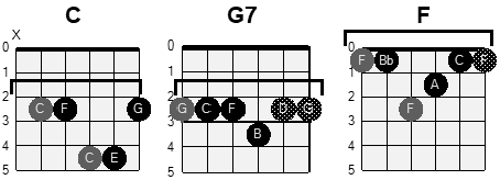 zogeheten 12-Bar Blues en heeft in de twaalf maten de volgende akkoordprogressie (we geven de maten en de akkoorden):