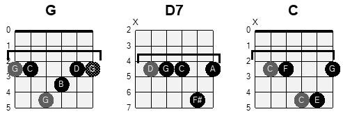Om niet in deze valkuil te trappen, speelt de gitarist over het algemeen alleen de noten op de G, B en hoge-E snaar, eventueel nog de D