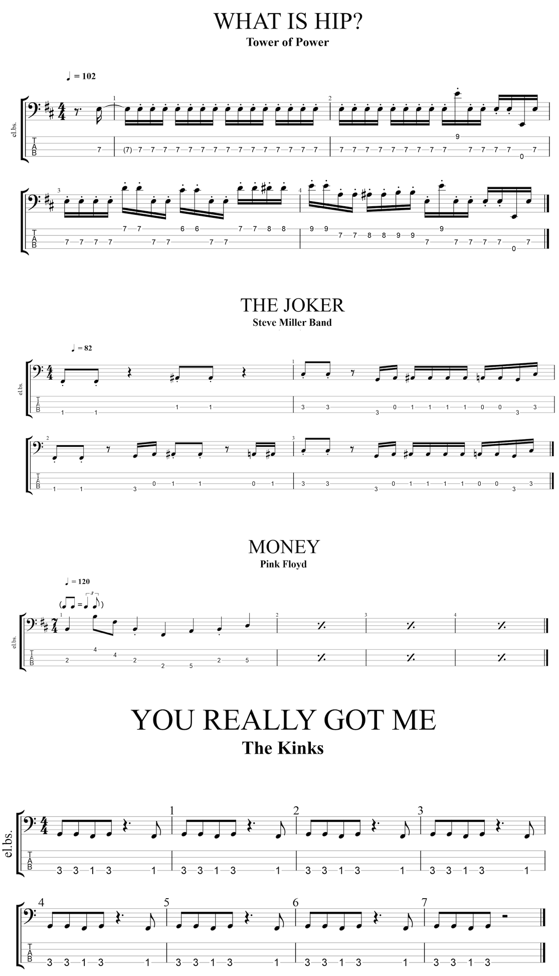 bronnen: online.berklee.edu, bigbasstabs.com, guitargearfinder.com, truefire.com, ultimate-guitar.com, Bass Guitar Archives GuitarJan.com,