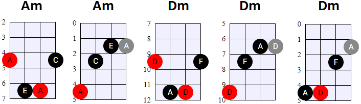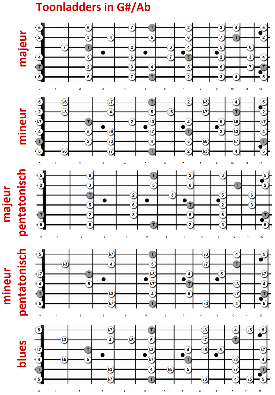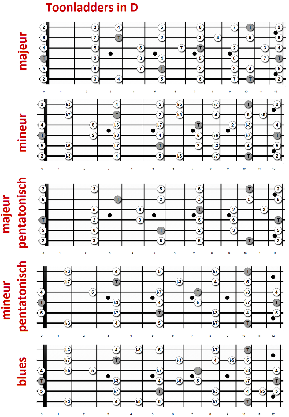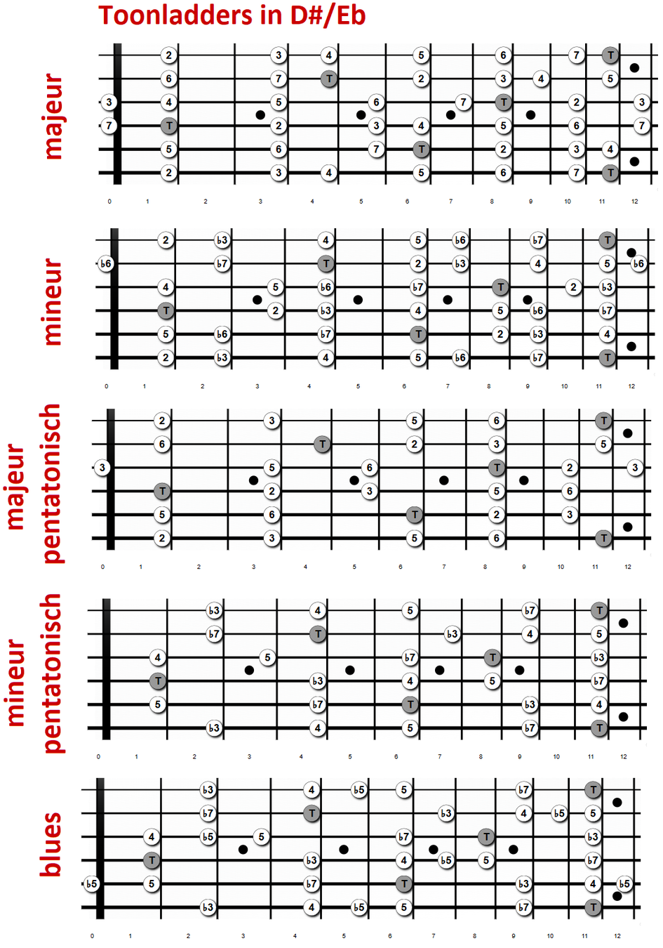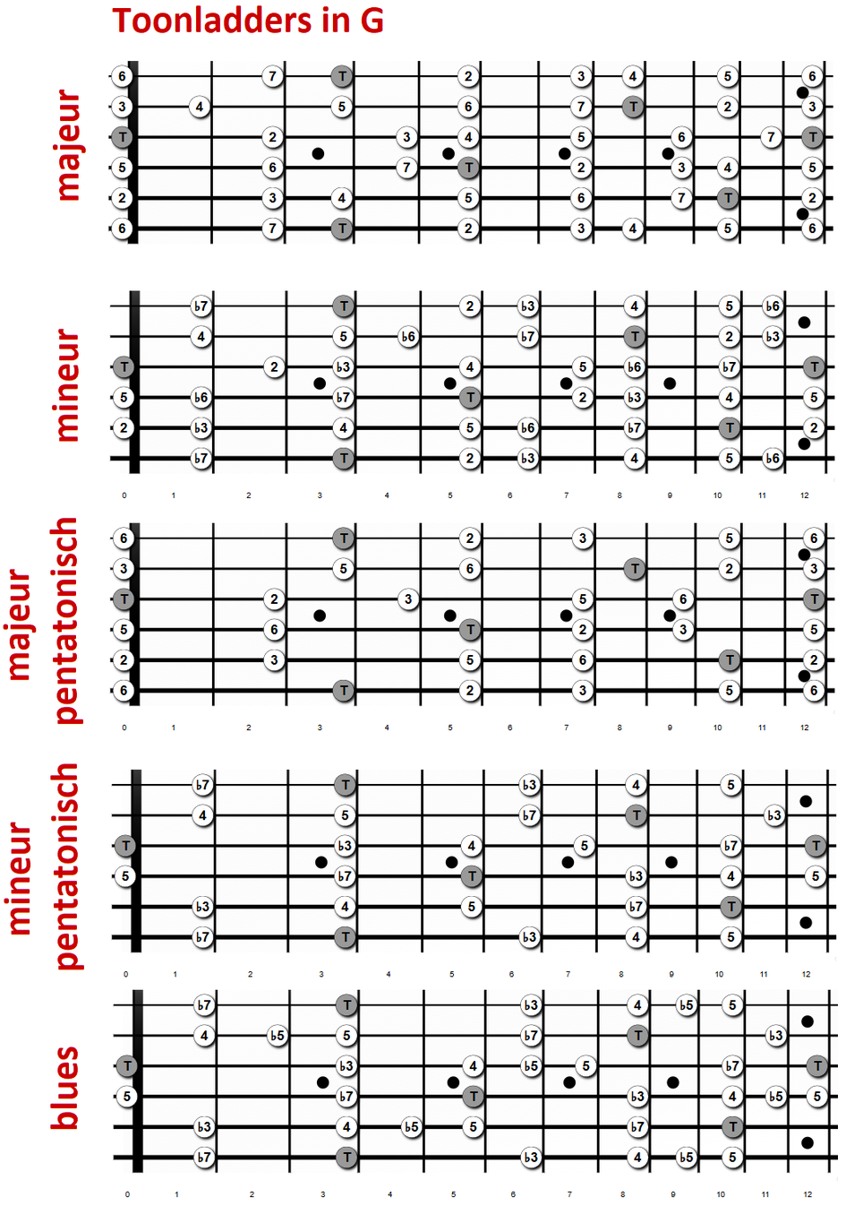 mineur pentatonisch, blues (basis mineur).