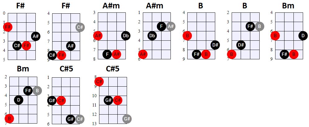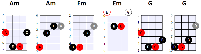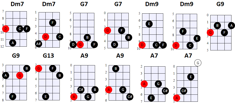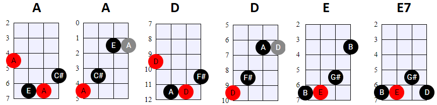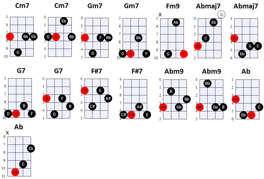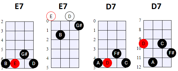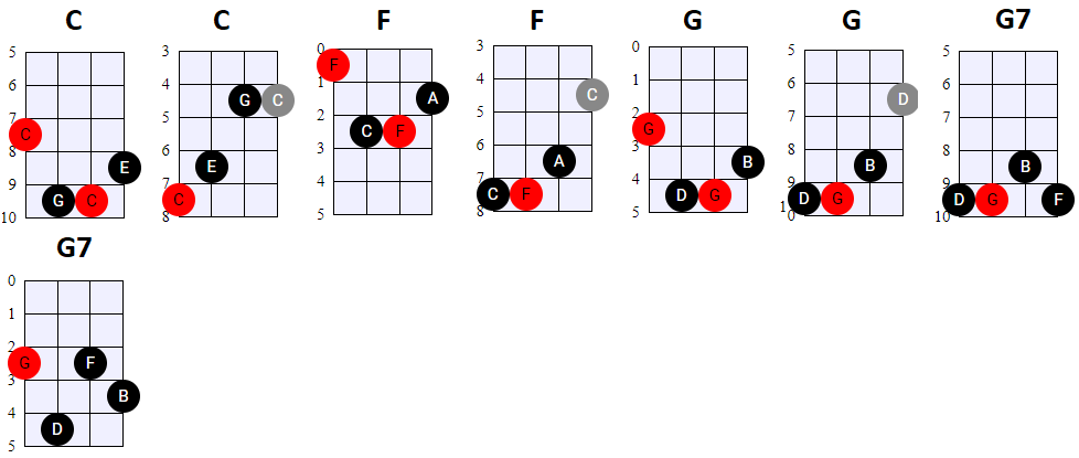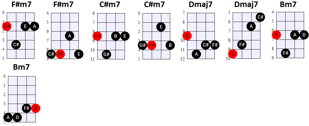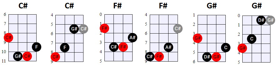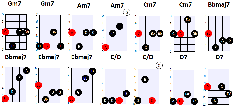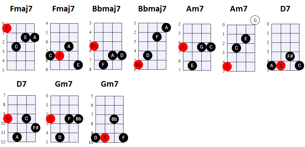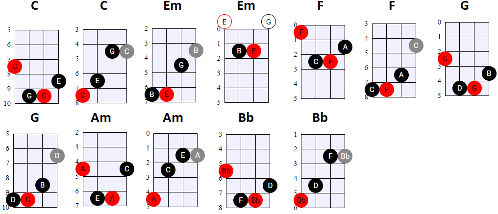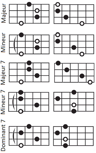 andere Shapes wilt gebruiken, of geen 4-snaren maar 3-snaren akkoorden wilt spelen, is dat natuurlijk prima. Hier en daar wisselen we ook het gebruik