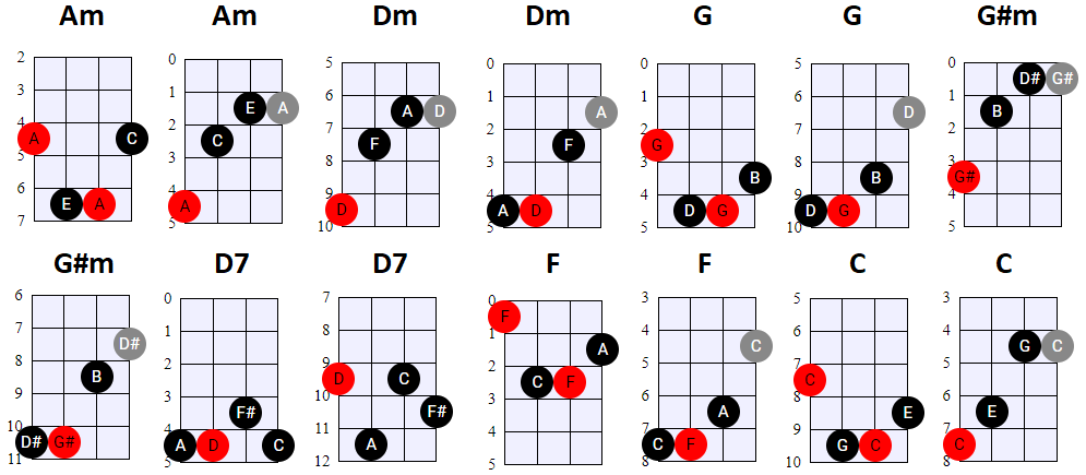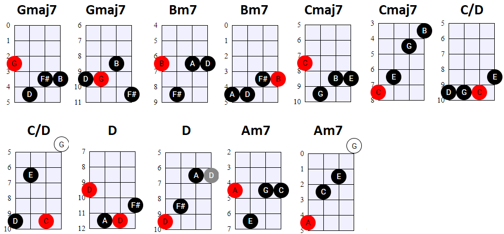 aantal akkoorden soms meerdere varianten geven. Let wel: je hoeft niet persé de akkoorden op de voorgestelde manier te spelen. Als je