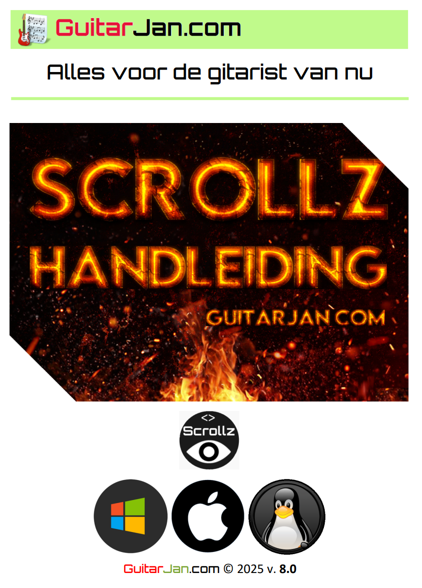 in één keer op je systeem, met als hoofdmap "GuitarJan SCROLLZ". Alle informatie komt als volgt op je systeem te staan, waarbij we